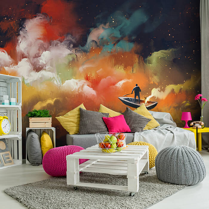 FOTOTAPETE Gemälde mit Wolken Mann im Boot