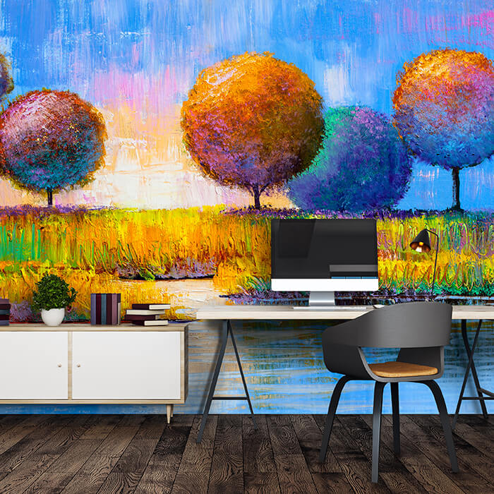 Träumst Du davon, Deine Wände in eine beeindruckende Kunstgalerie zu verwandeln? Mit unserer hochwertigen Fototapete Gemälde Runde Bäume mit See M6007 ist es jetzt möglich! Jede Wand wird zu einer Leinwand Deiner Kreativität.