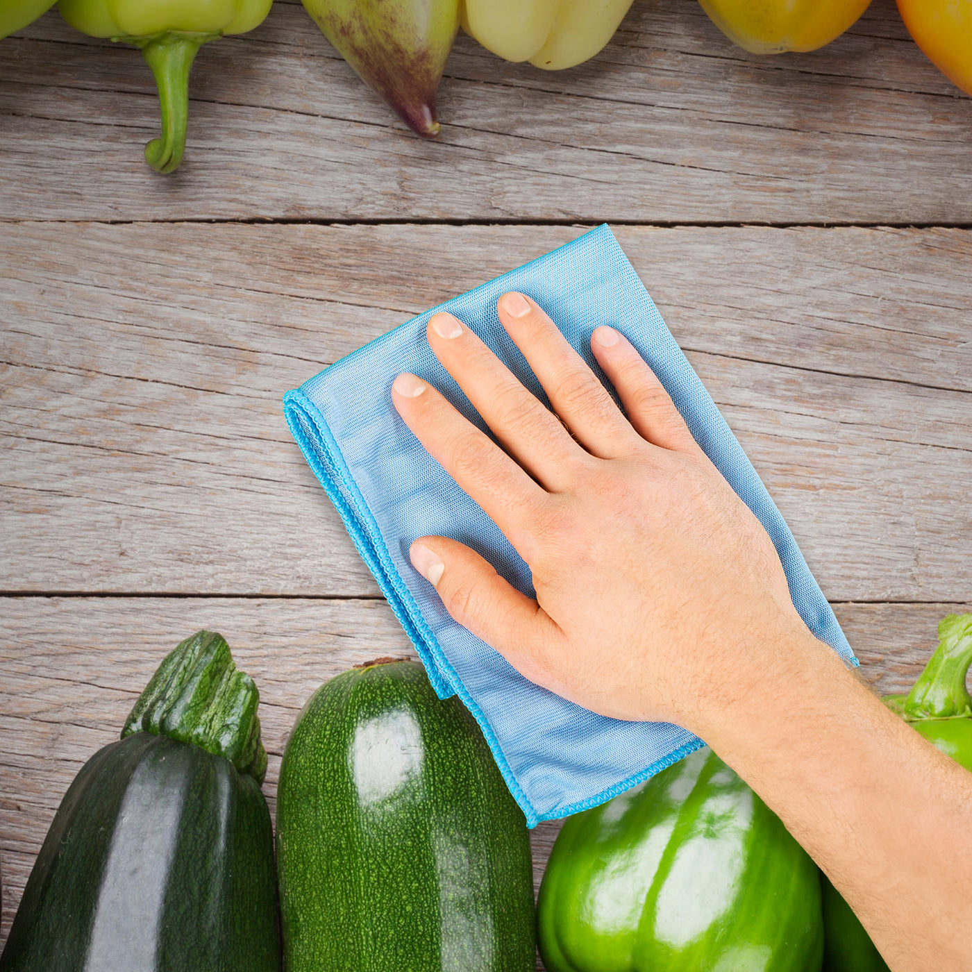 - Reinige eventuelle Verschmutzungen oder Kleberreste sofort mit einem feuchten Schwamm oder Tuch.