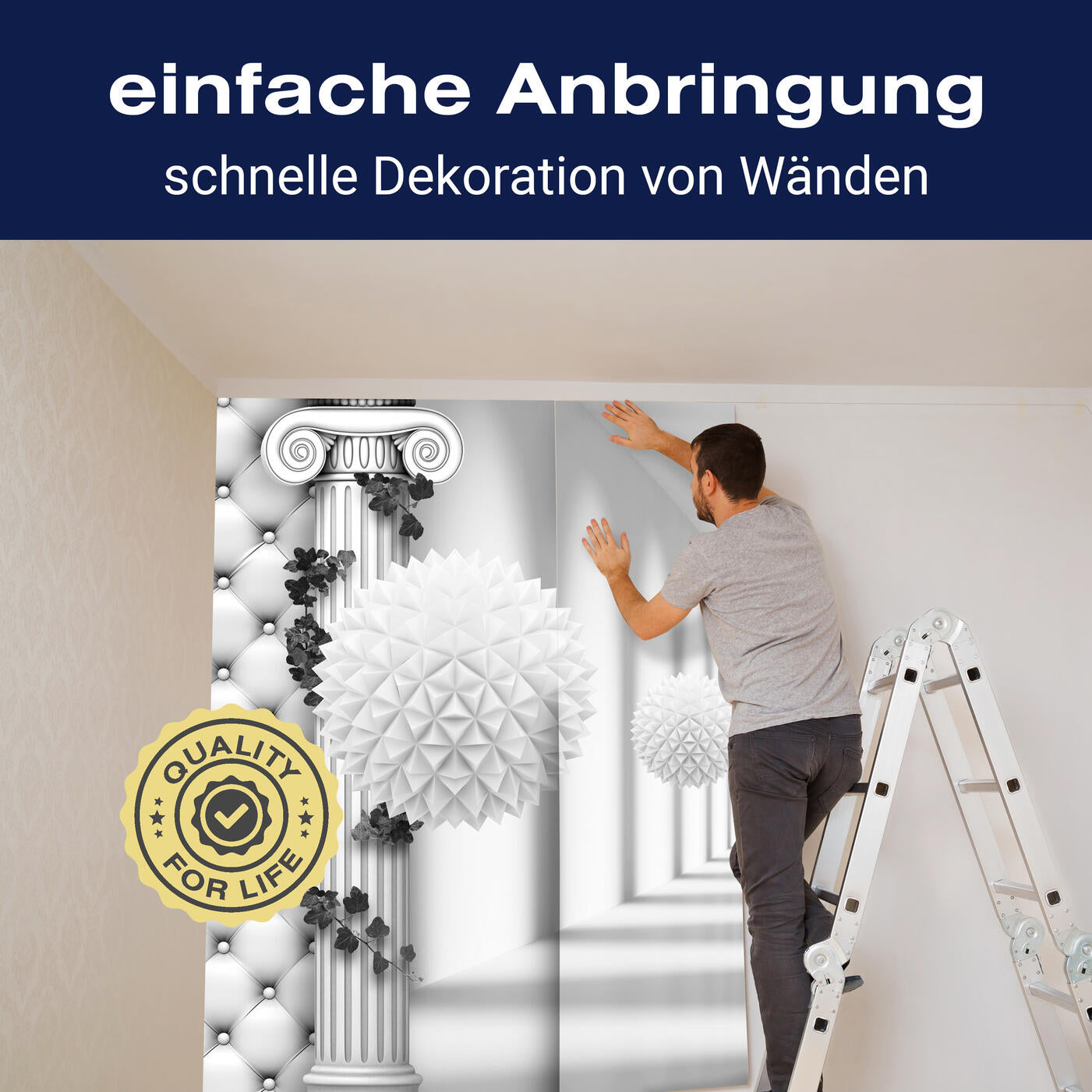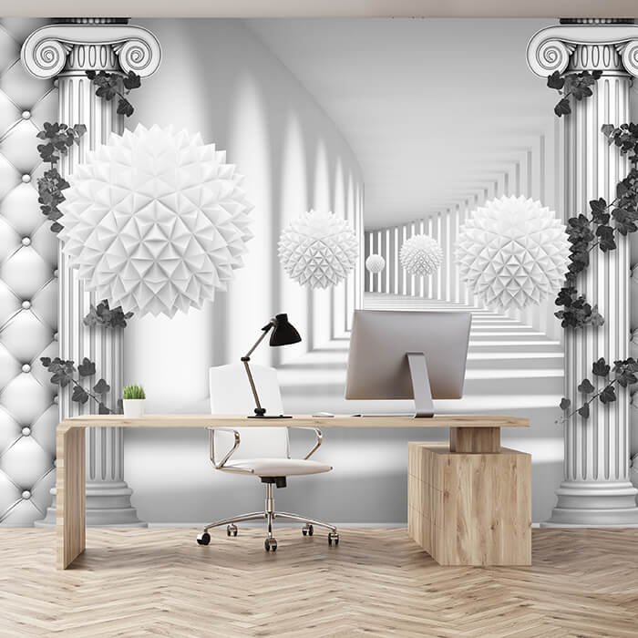 FOTOTAPETE grau Korridor Säulen Polsterwand
