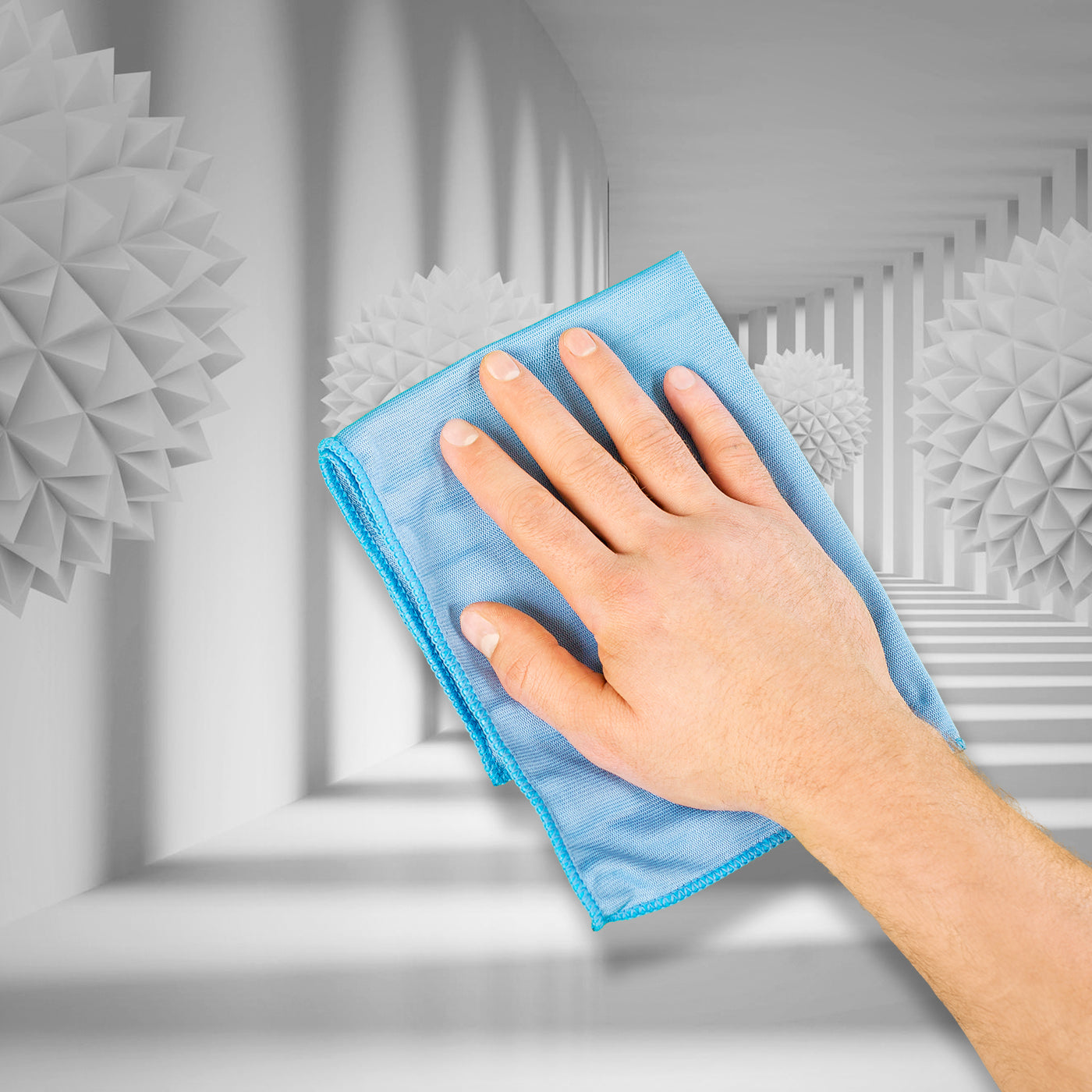 - Reinige eventuelle Verschmutzungen oder Kleberreste sofort mit einem feuchten Schwamm oder Tuch.