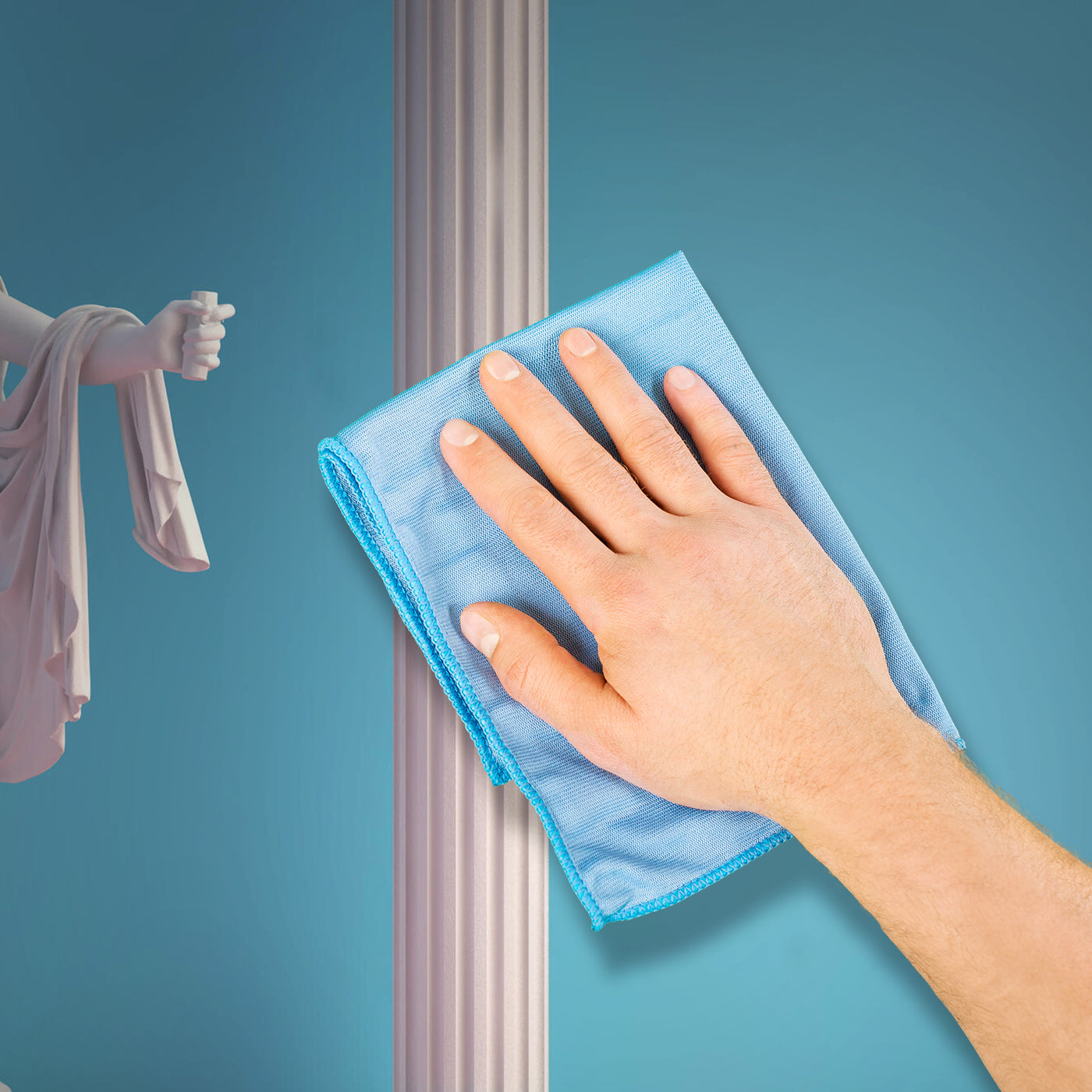 - Reinige eventuelle Kleberreste sofort mit einem feuchten Schwamm oder Tuch.