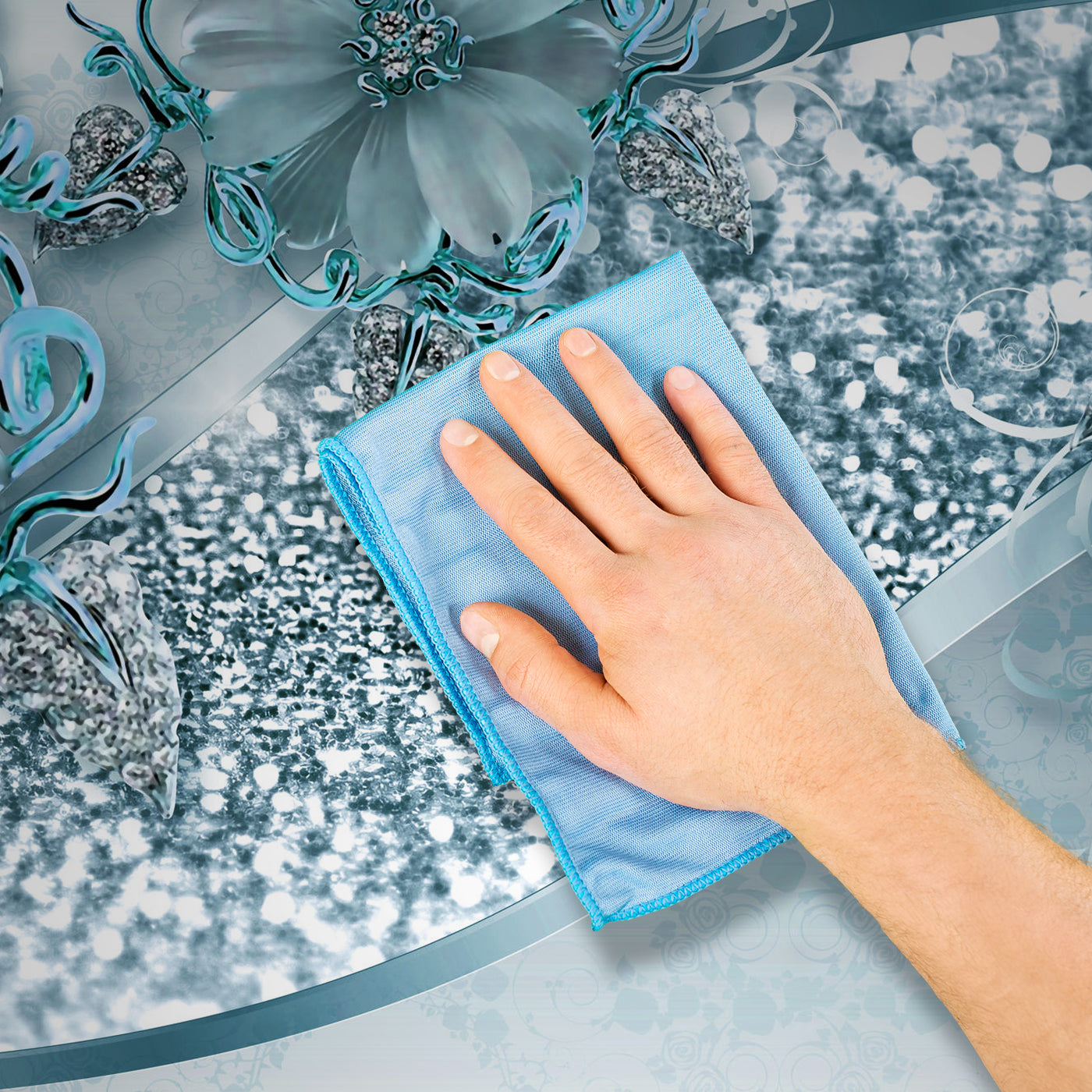 - Reinige eventuelle Verschmutzungen oder Kleberreste sofort mit einem feuchten Schwamm oder Tuch.