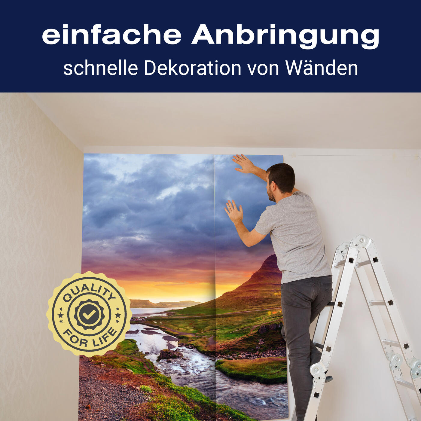 Unsere Fototapeten sind so konzipiert, dass sie ohne großen Aufwand angebracht werden können. Ob selbstklebend oder traditionell, die Anbringung ist einfach und schnell.