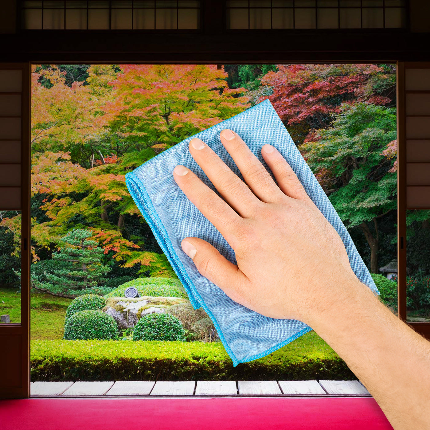 - Reinige eventuelle Verschmutzungen oder Kleberreste sofort mit einem feuchten Schwamm oder Tuch.
