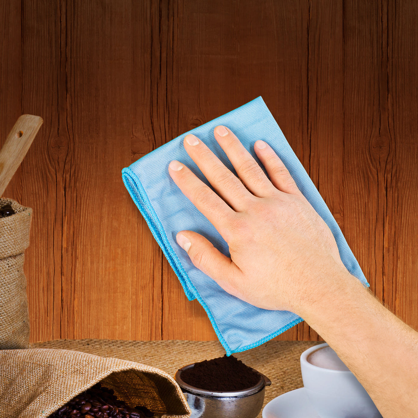 - Reinige eventuelle Verschmutzungen oder Kleberreste sofort mit einem feuchten Schwamm oder Tuch.