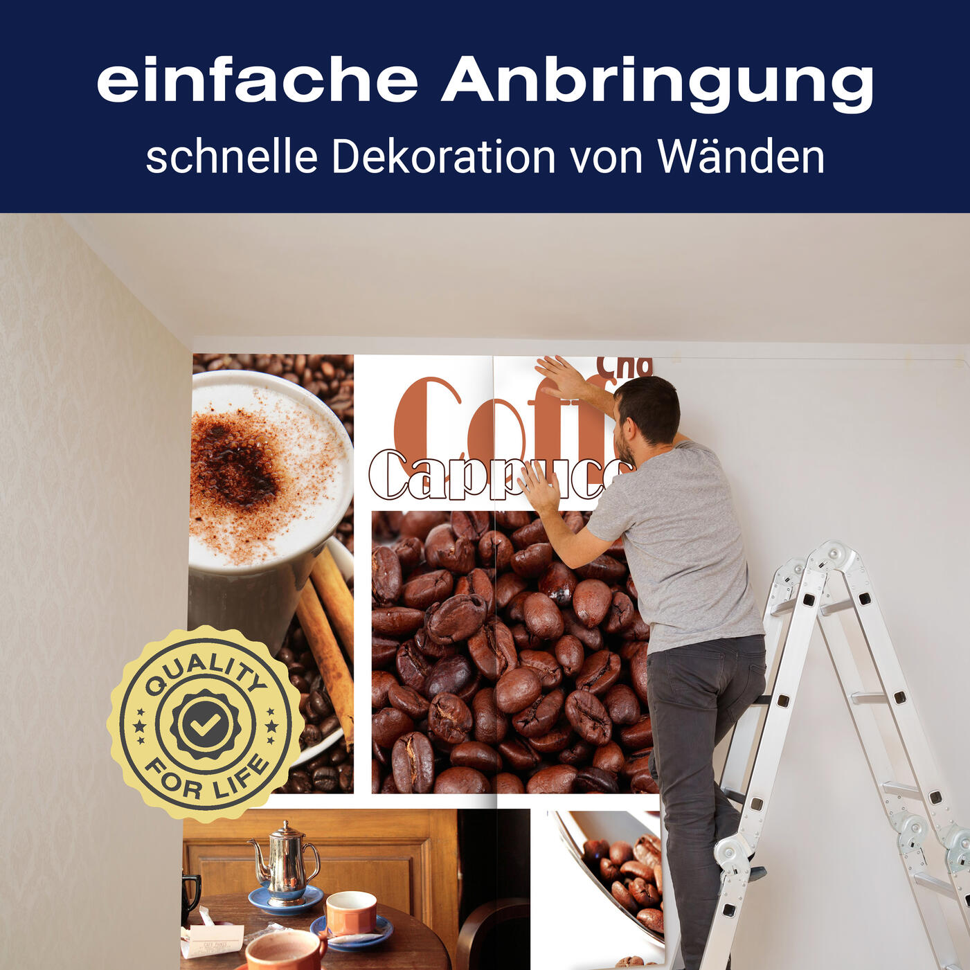 Unsere Fototapeten sind so konzipiert, dass sie ohne großen Aufwand angebracht werden können. Ob selbstklebend oder traditionell, die Anbringung ist einfach und schnell.