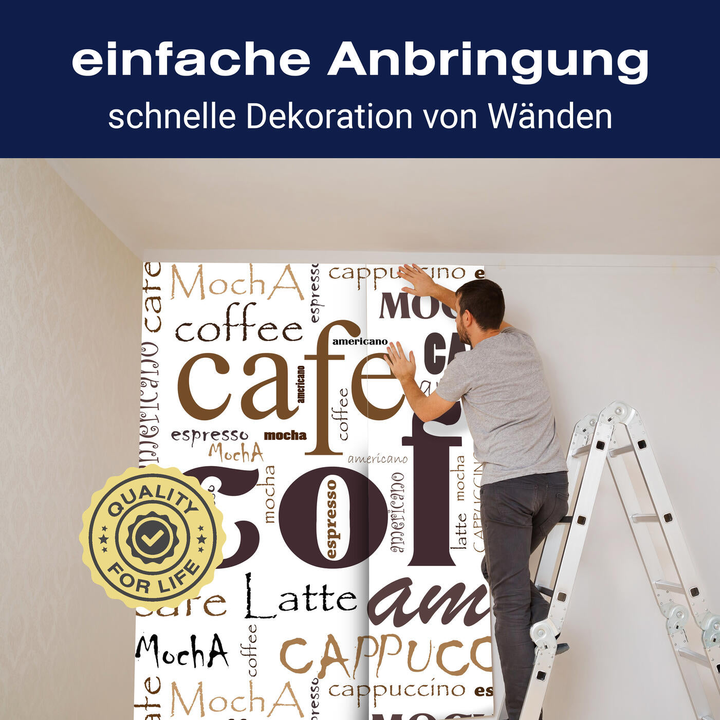Träumst Du davon, Deine Wände in eine beeindruckende Kunstgalerie zu verwandeln? Mit unserer hochwertigen Fototapete Kaffee Schrift Wörter M6153 ist es jetzt möglich! Jede Wand wird zu einer Leinwand Deiner Kreativität.