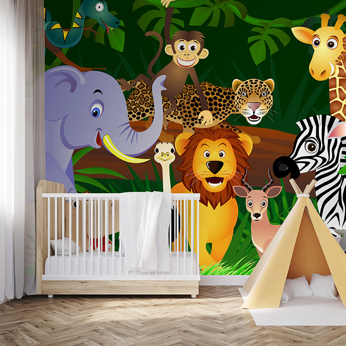 FOTOTAPETE Kinderzimmer, Dschungel, Tiere