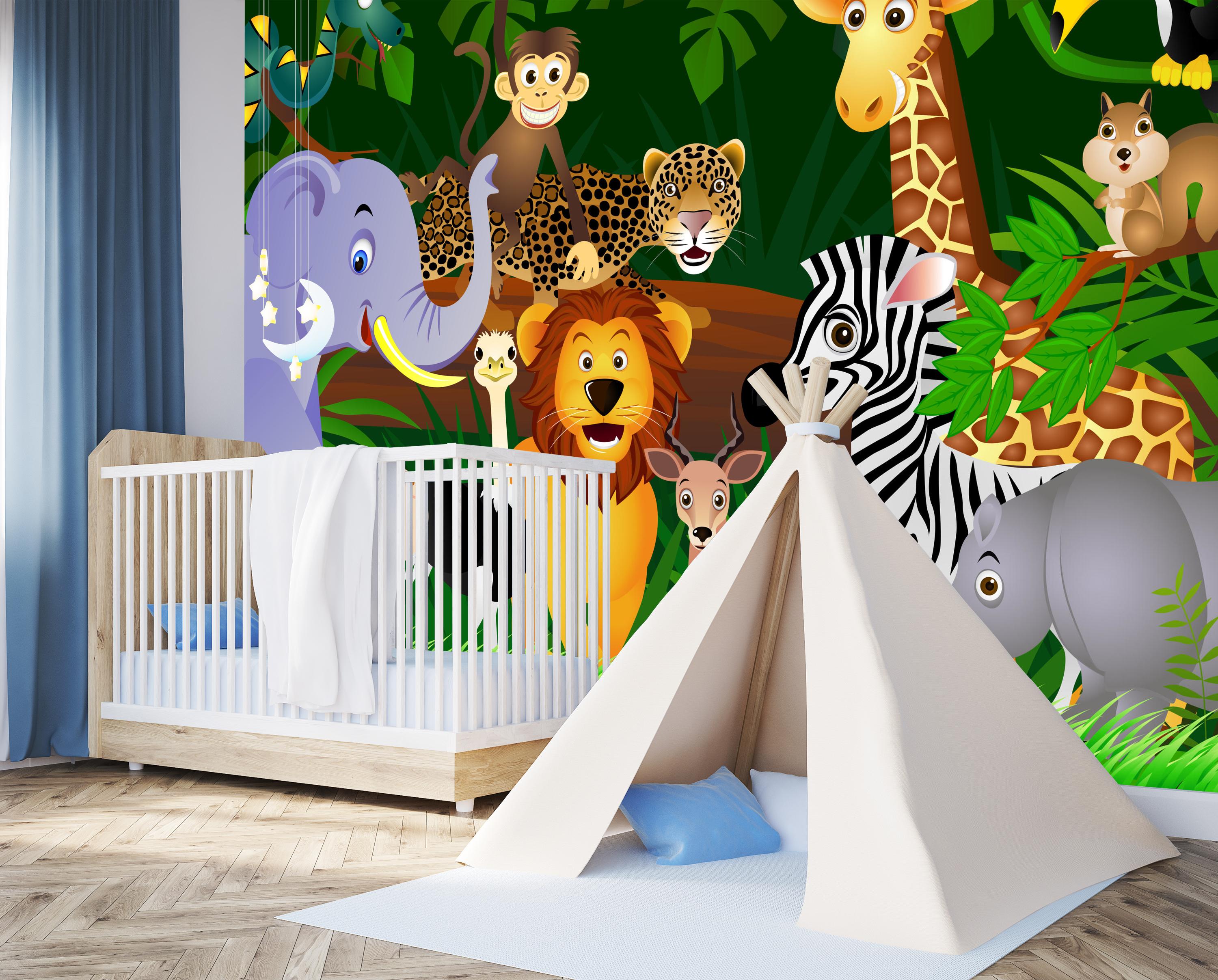 Träumst Du davon, Deine Wände in eine beeindruckende Kunstgalerie zu verwandeln? Mit unserer hochwertigen Fototapete Kinderzimmer, Dschungel, Tiere M0002 ist es jetzt möglich! Jede Wand wird zu einer Leinwand Deiner Kreativität.