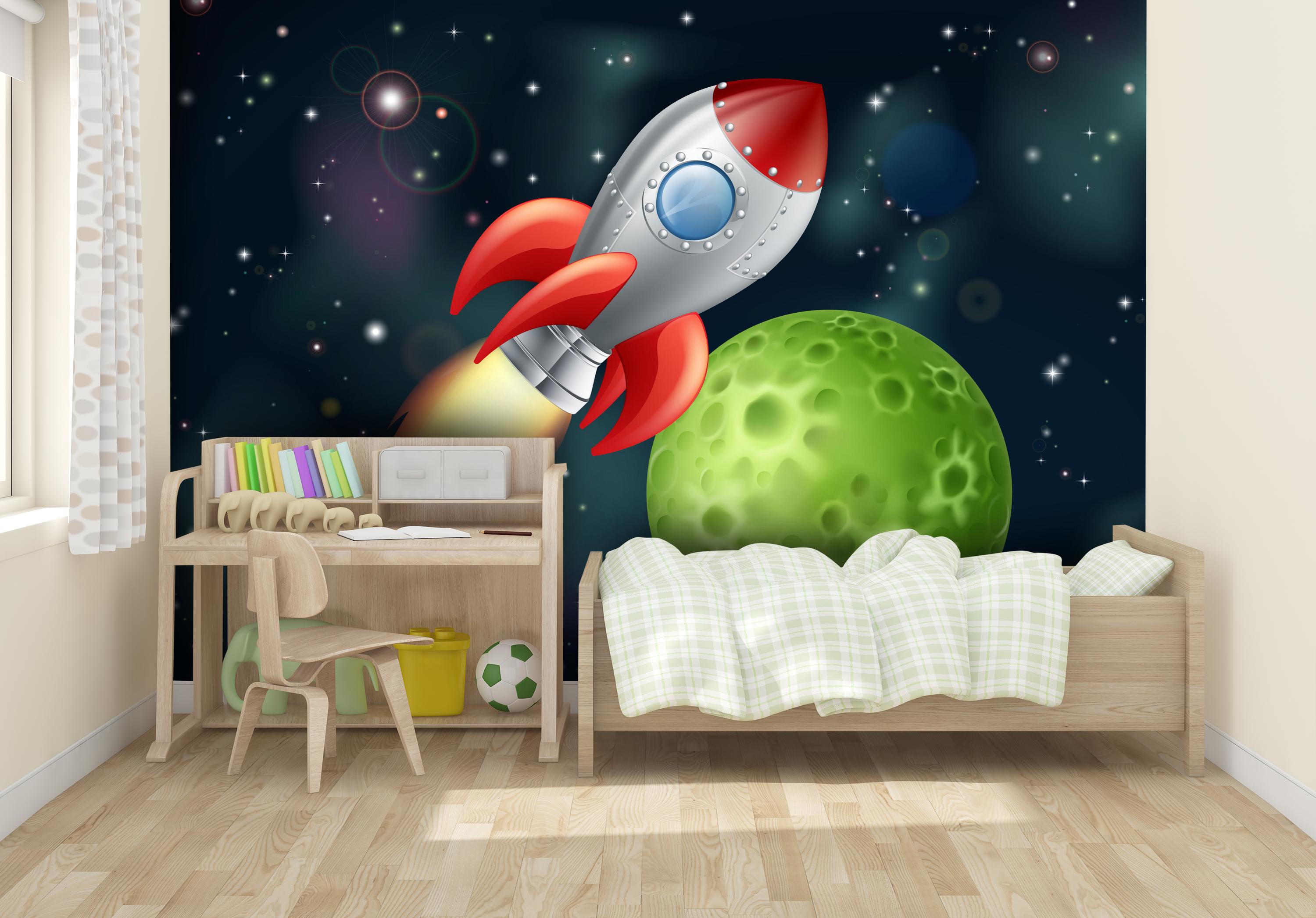 FOTOTAPETE Kinderzimmer Rakete im Weltall