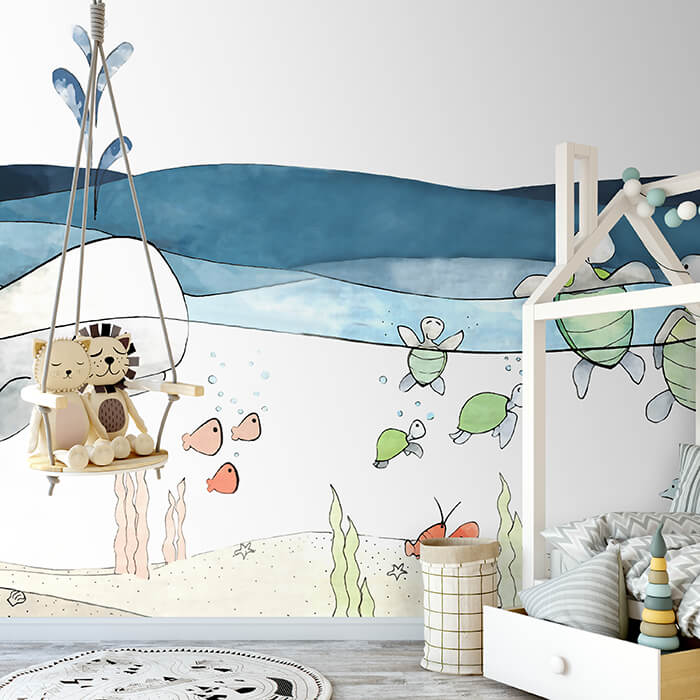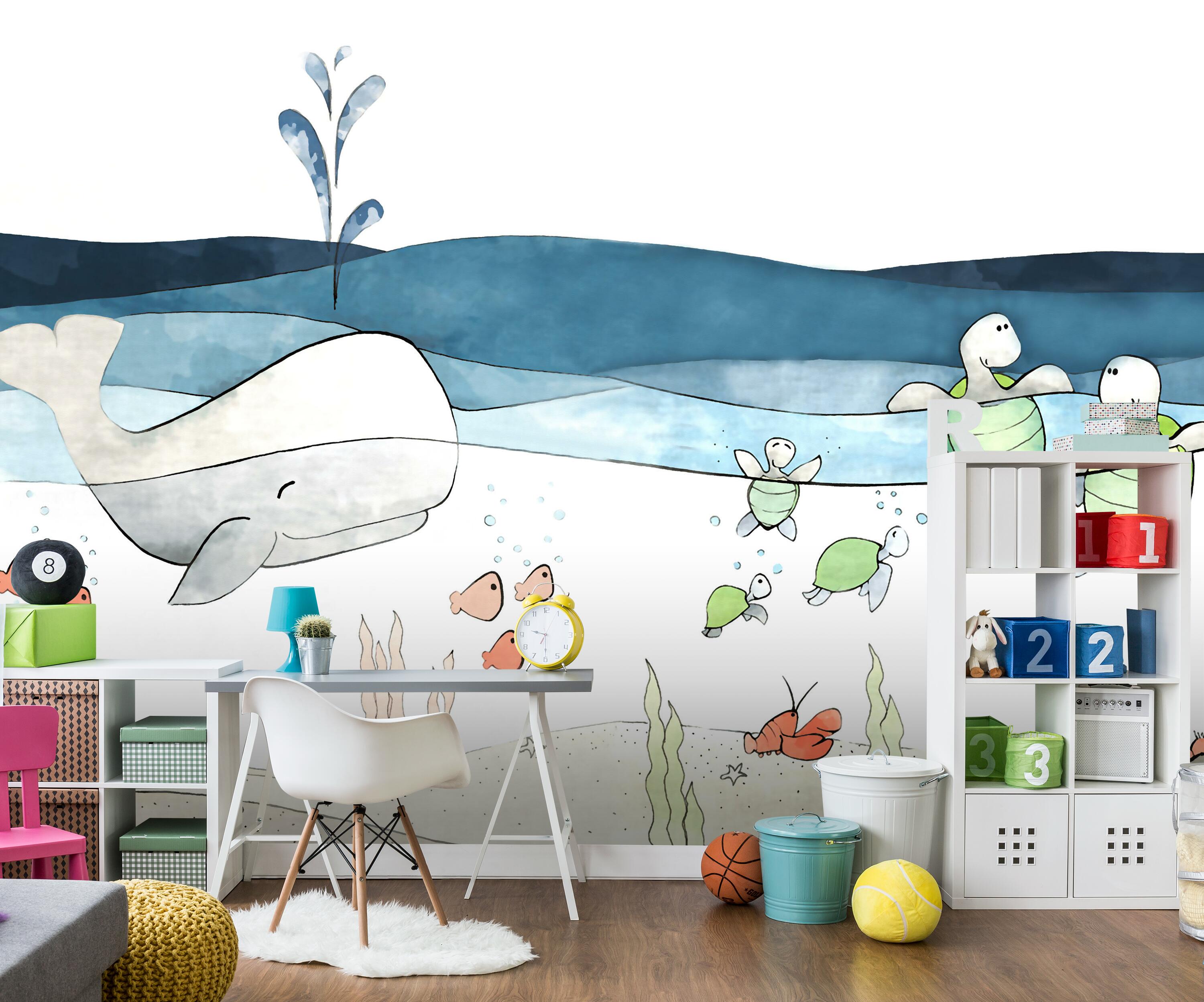 FOTOTAPETE Kinderzimmer Wasser Wal Schildkröte