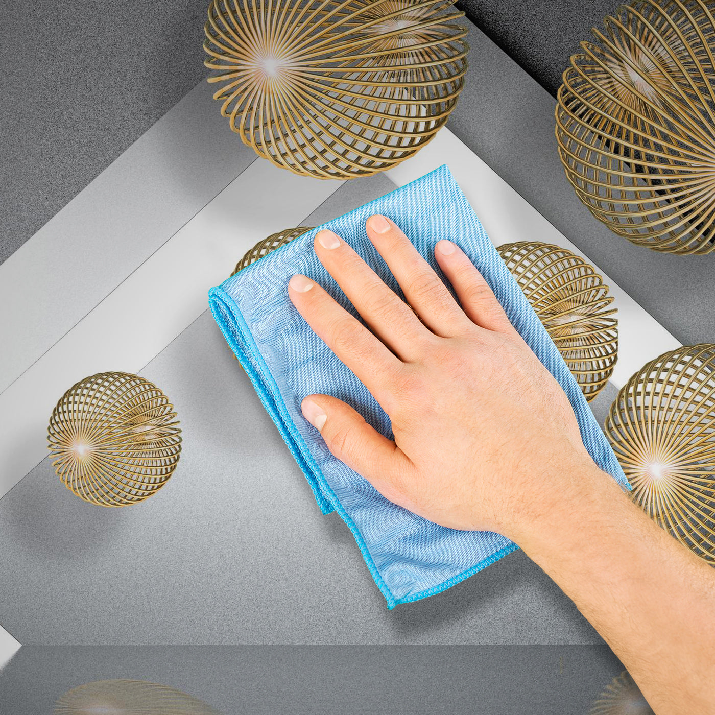 - Reinige eventuelle Verschmutzungen oder Kleberreste sofort mit einem feuchten Schwamm oder Tuch.