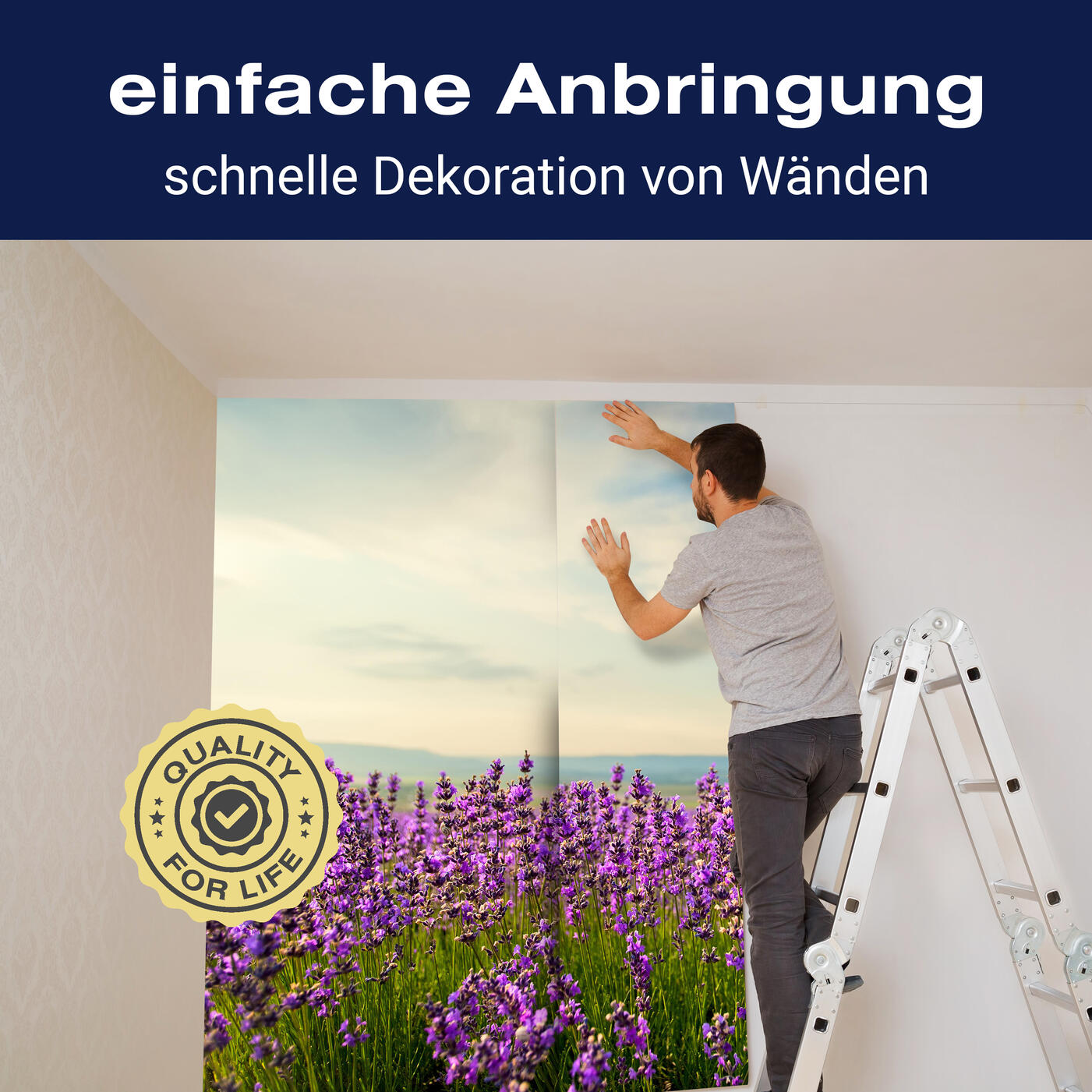 Unsere Fototapeten sind so konzipiert, dass sie ohne großen Aufwand angebracht werden können. Ob selbstklebend oder traditionell, die Anbringung ist einfach und schnell.