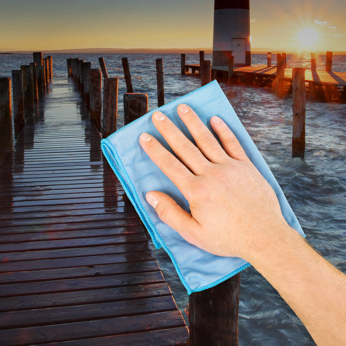 - Reinige eventuelle Verschmutzungen oder Kleberreste sofort mit einem feuchten Schwamm oder Tuch.