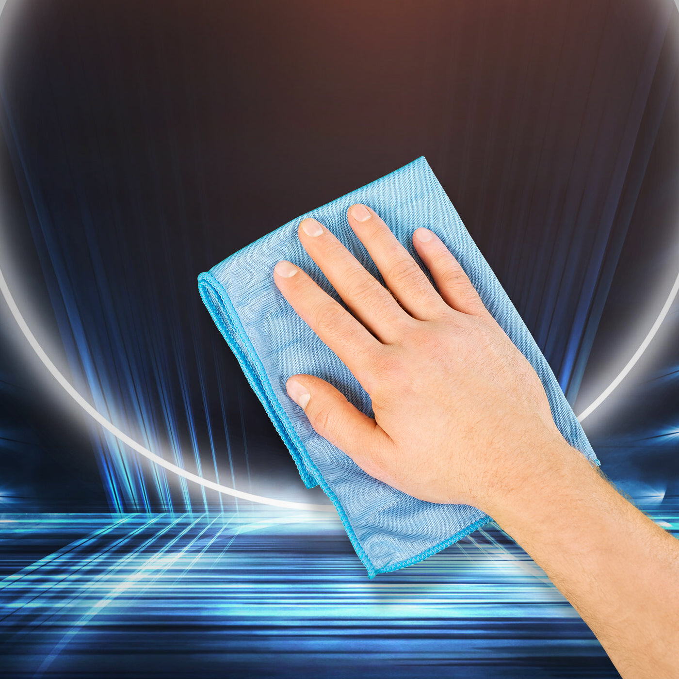 - Reinige eventuelle Verschmutzungen oder Kleberreste sofort mit einem feuchten Schwamm oder Tuch.