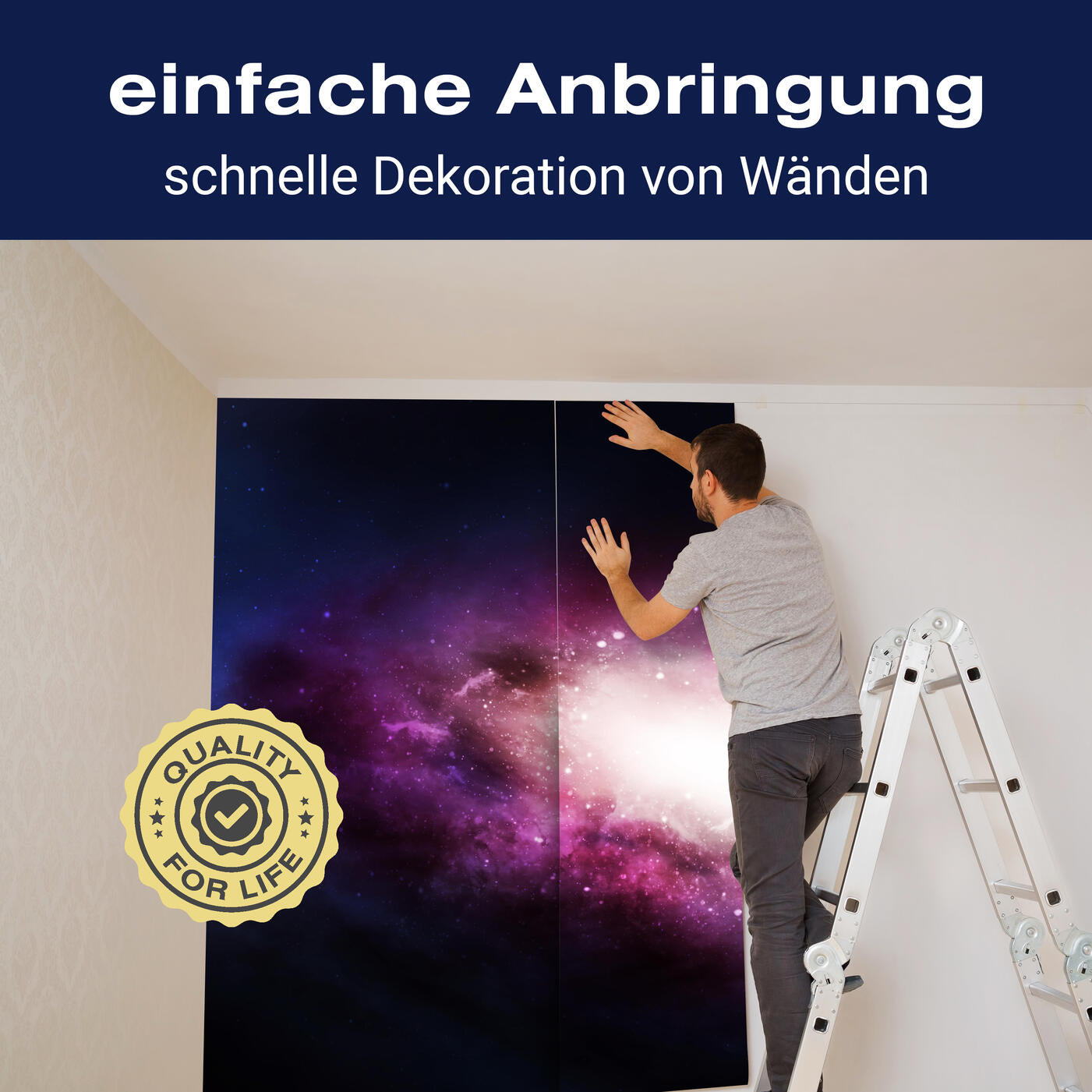 Unsere Fototapeten sind so konzipiert, dass sie ohne großen Aufwand angebracht werden können. Ob selbstklebend oder traditionell, die Anbringung ist einfach und schnell.
