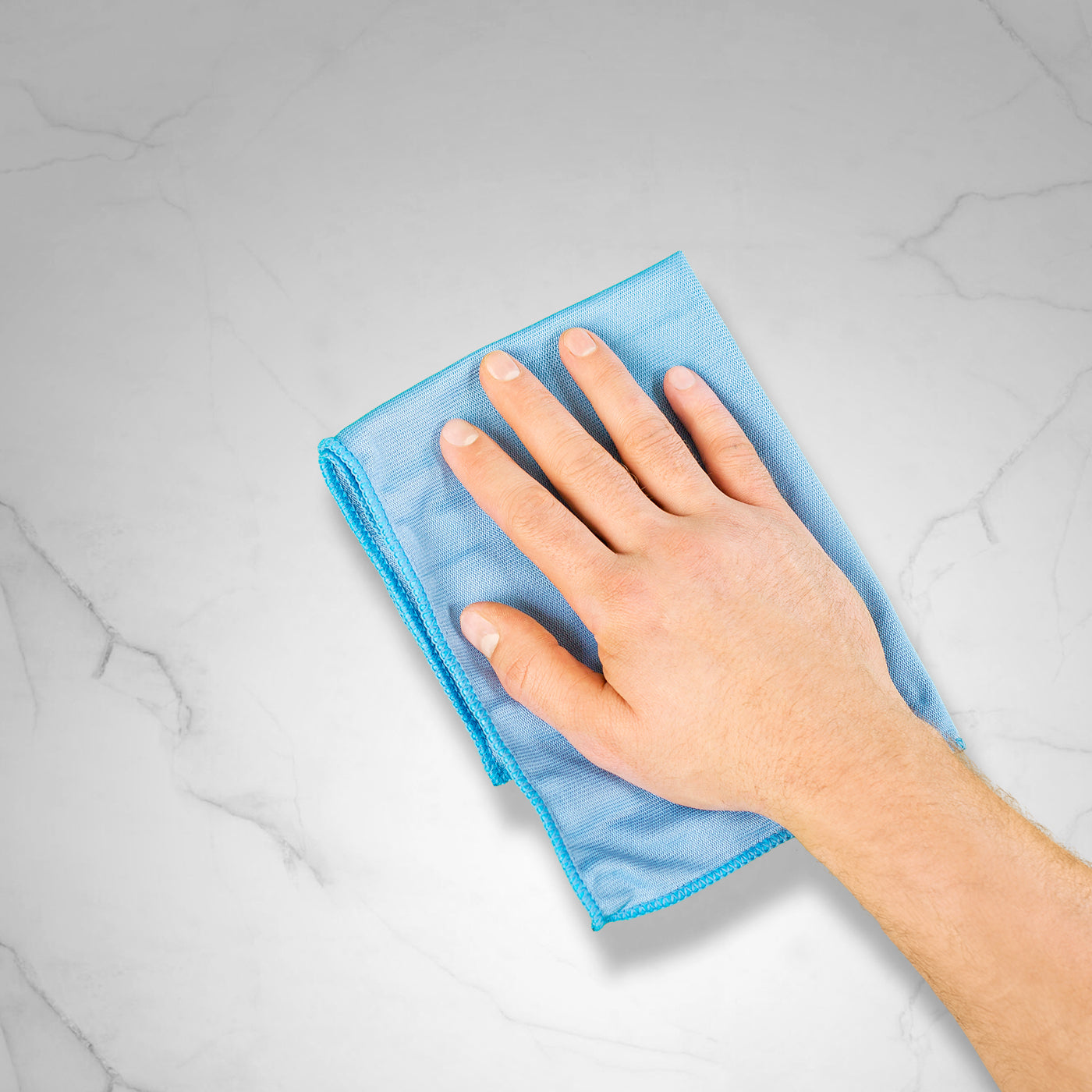 - Reinige eventuelle Verschmutzungen oder Kleberreste sofort mit einem feuchten Schwamm oder Tuch.