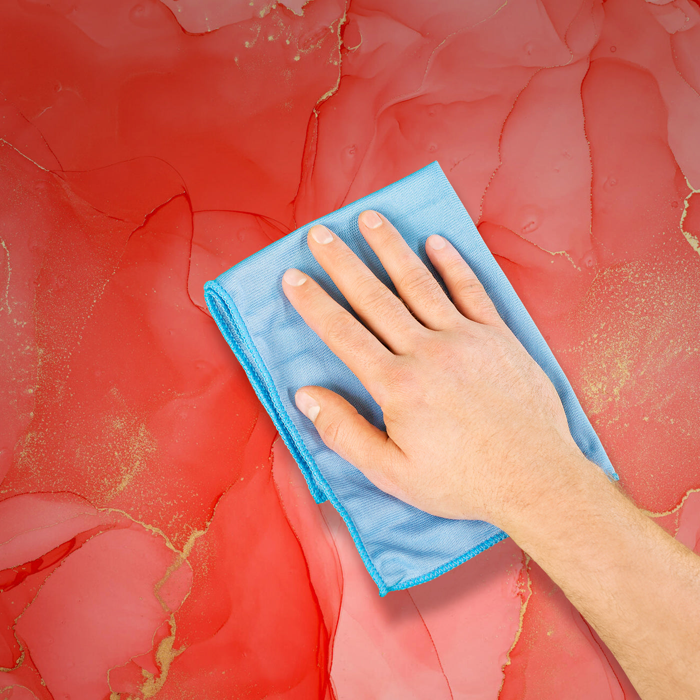 - Reinige eventuelle Kleberreste sofort mit einem feuchten Schwamm oder Tuch.