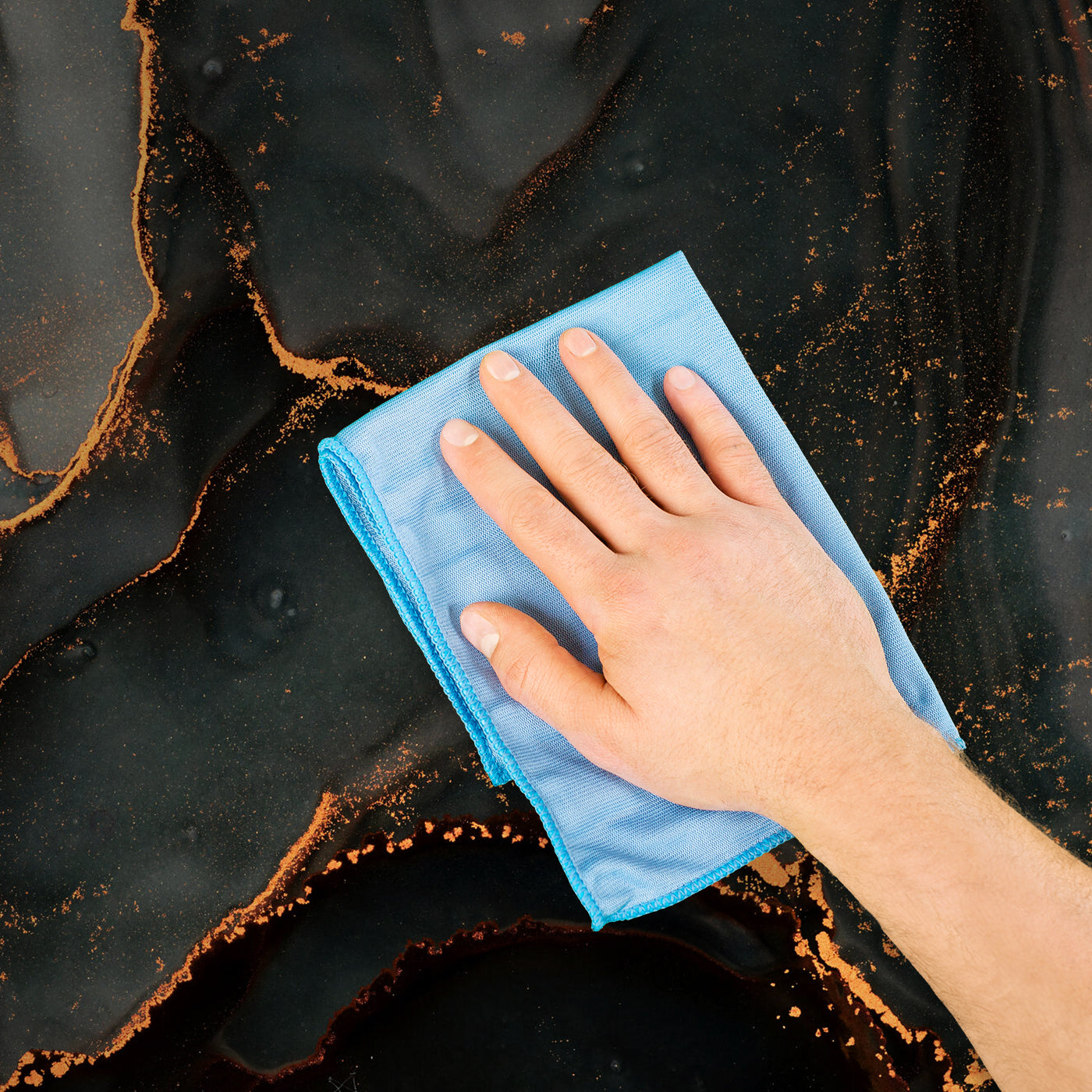 - Reinige eventuelle Kleberreste sofort mit einem feuchten Schwamm oder Tuch.