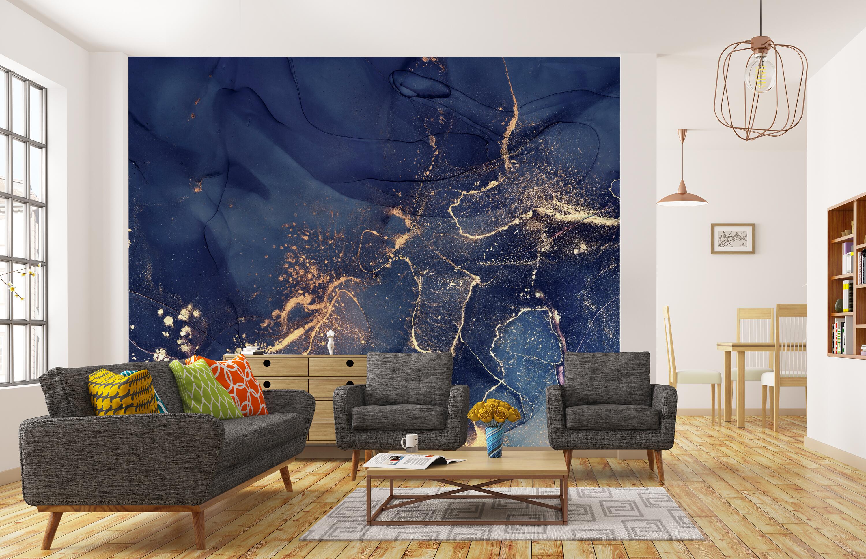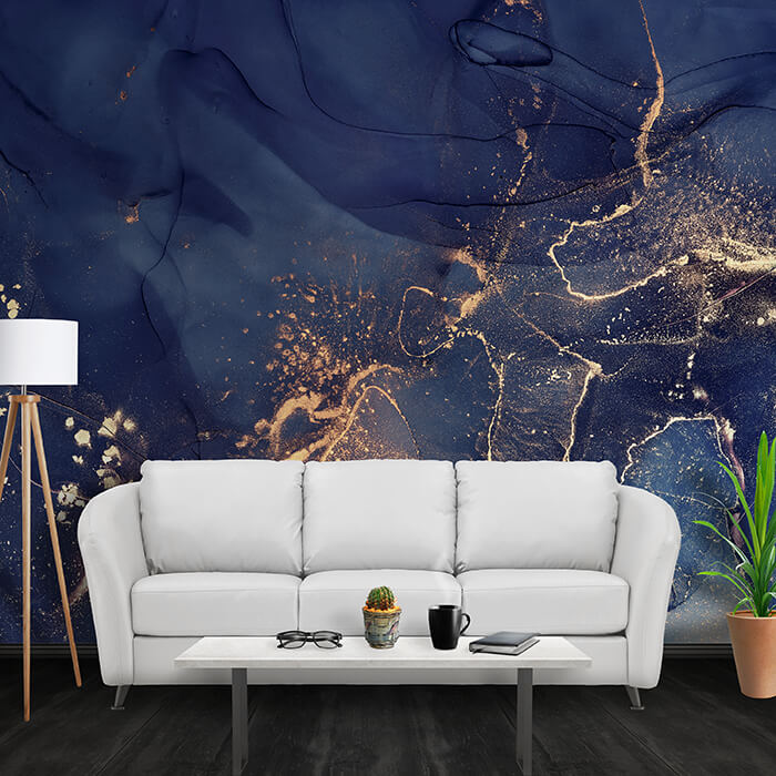 FOTOTAPETE Marmoroptik Wasserfarbe dunkelblau