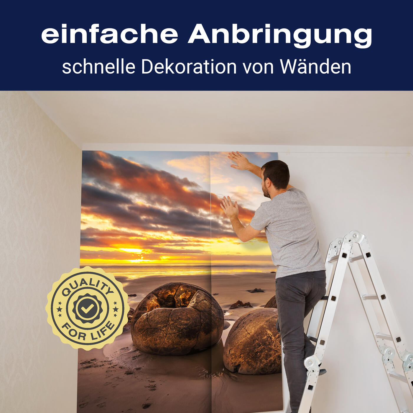 Unsere Fototapeten sind so konzipiert, dass sie ohne großen Aufwand angebracht werden können. Ob selbstklebend oder traditionell, die Anbringung ist einfach und schnell.