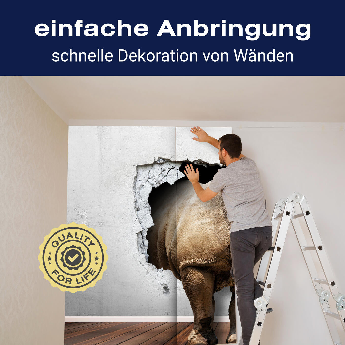 Fototapete Nashorn 3D Optik Wanddruchbruch M6616