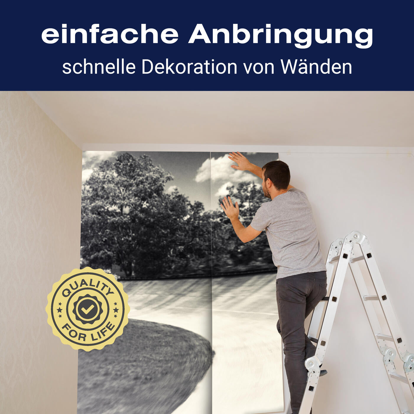 Unsere Fototapeten sind so konzipiert, dass sie ohne großen Aufwand angebracht werden können. Ob selbstklebend oder traditionell, die Anbringung ist einfach und schnell.