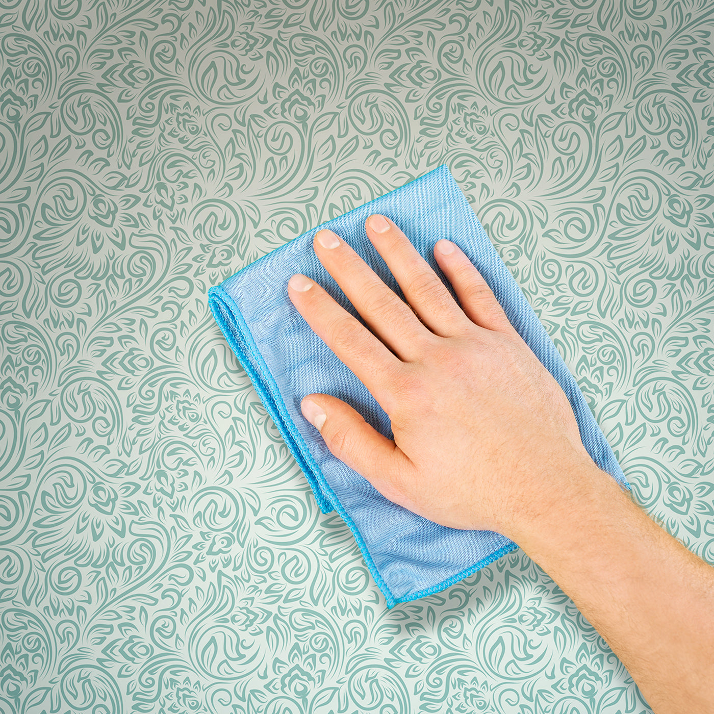- Reinige eventuelle Verschmutzungen oder Kleberreste sofort mit einem feuchten Schwamm oder Tuch.