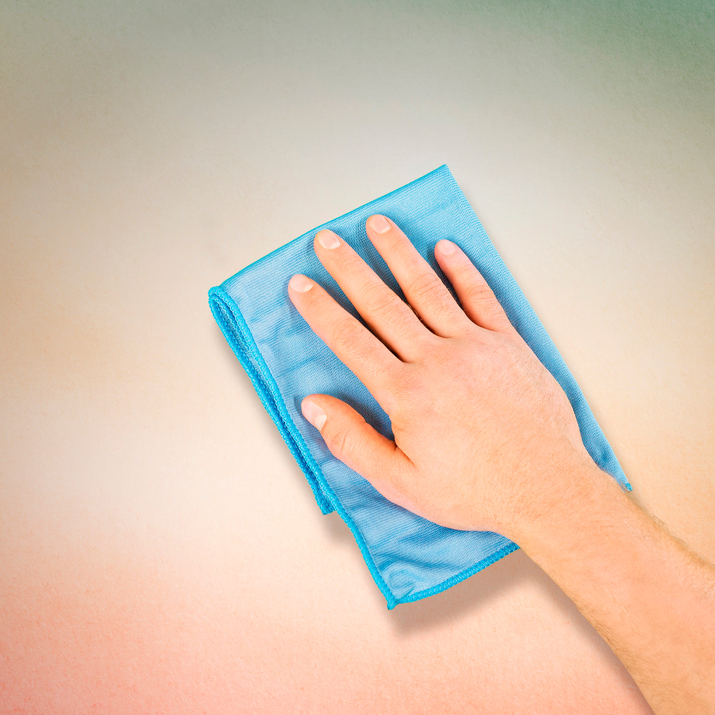 - Reinige eventuelle Verschmutzungen oder Kleberreste sofort mit einem feuchten Schwamm oder Tuch.