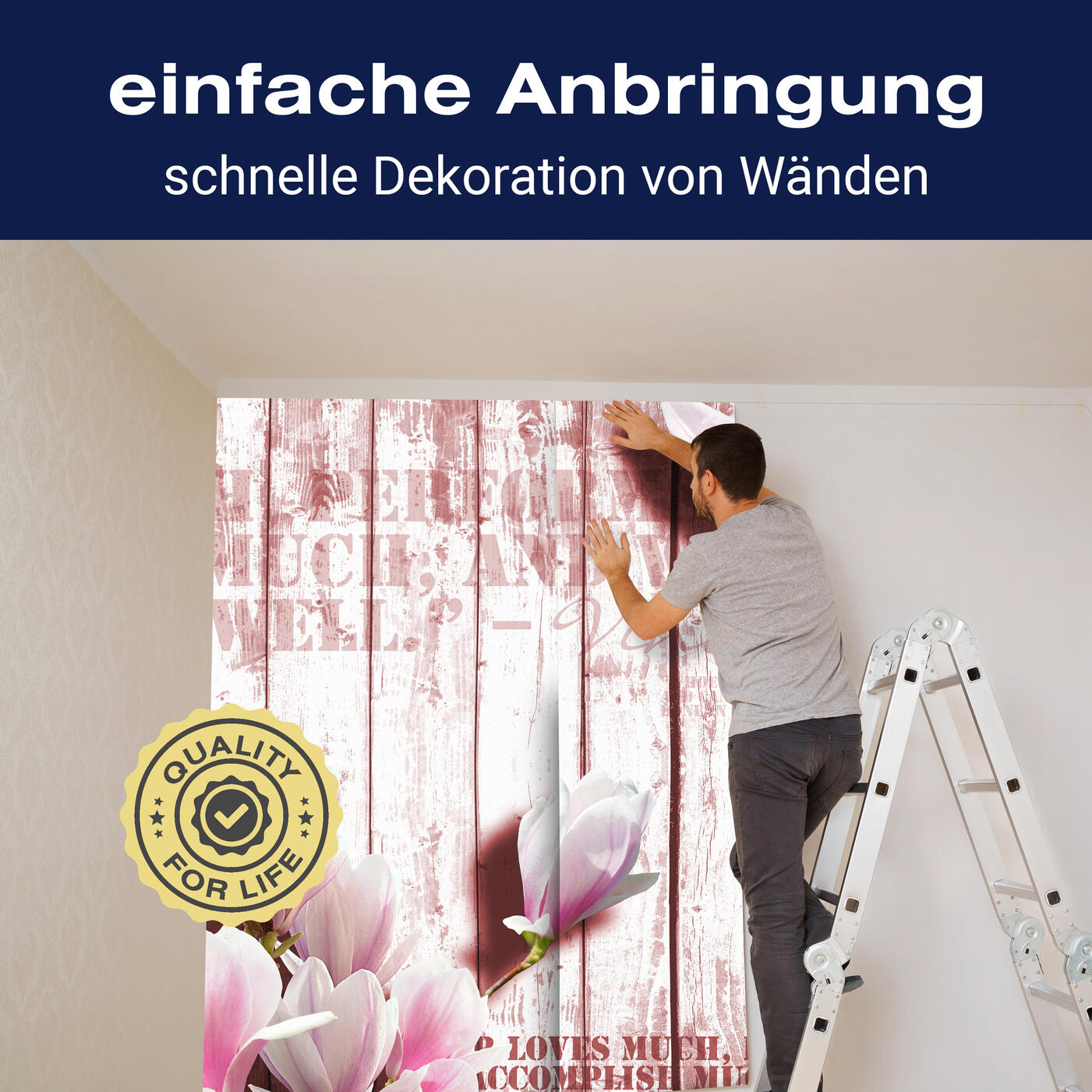 Unsere Fototapeten sind so konzipiert, dass sie ohne großen Aufwand angebracht werden können. Ob selbstklebend oder traditionell, die Anbringung ist einfach und schnell.