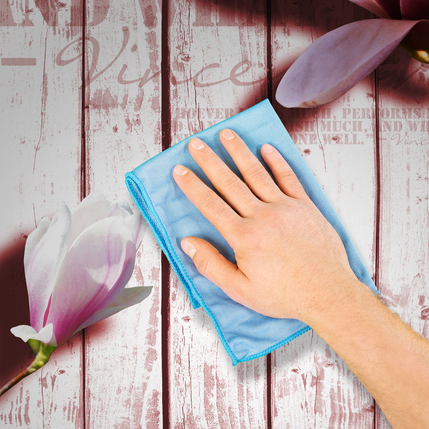 - Reinige eventuelle Verschmutzungen oder Kleberreste sofort mit einem feuchten Schwamm oder Tuch.