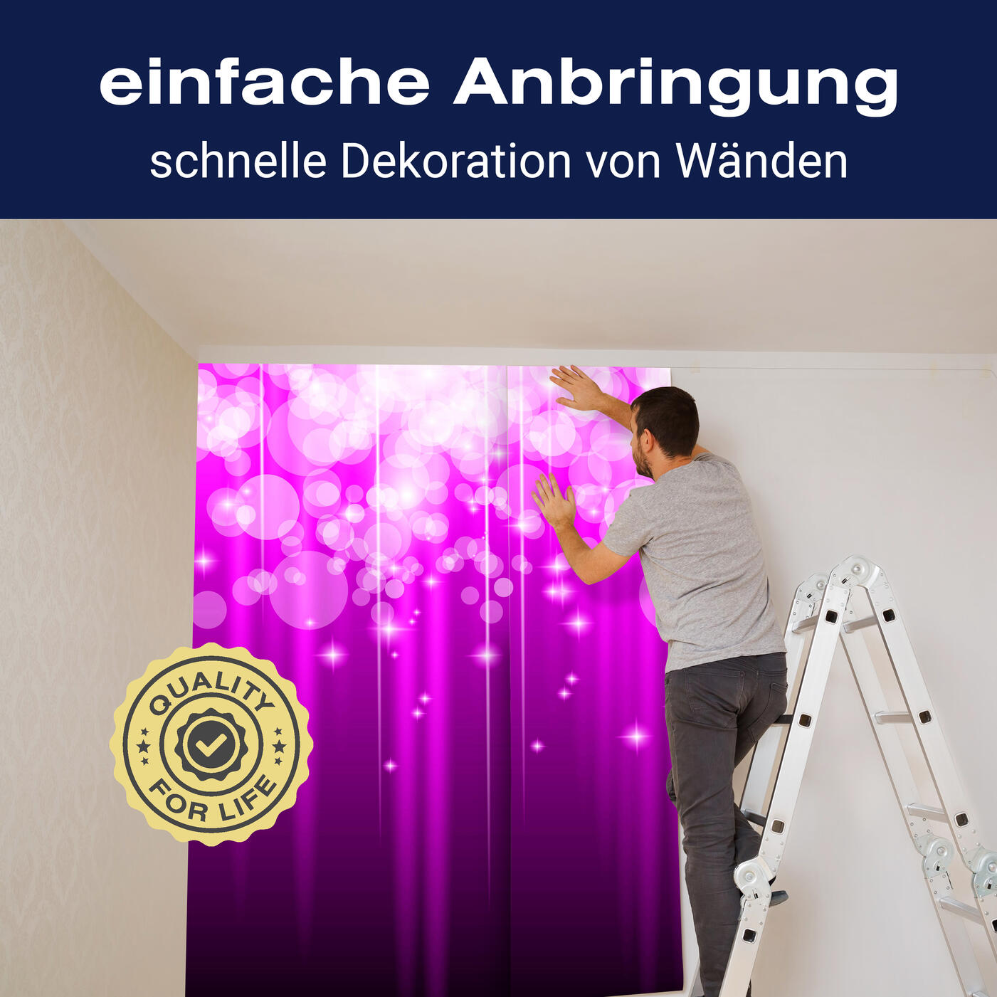 Unsere Fototapeten sind so konzipiert, dass sie ohne großen Aufwand angebracht werden können. Ob selbstklebend oder traditionell, die Anbringung ist einfach und schnell.