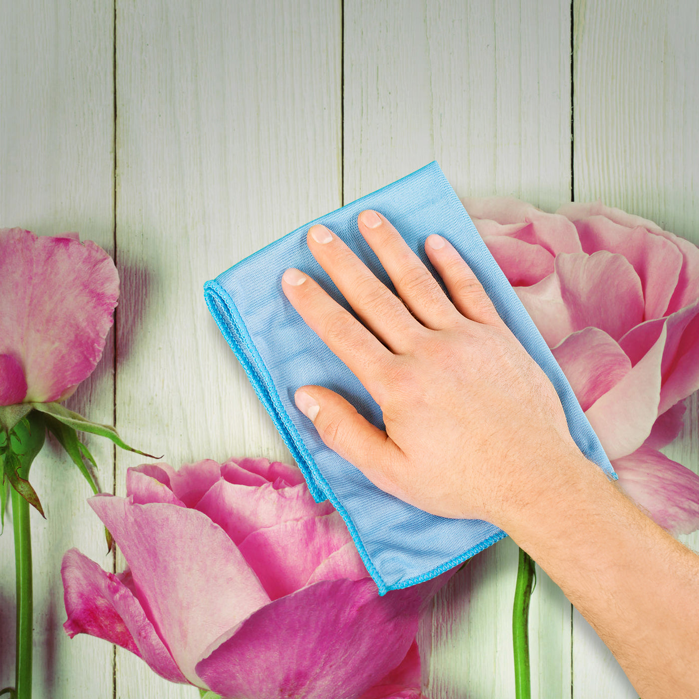 - Reinige eventuelle Verschmutzungen oder Kleberreste sofort mit einem feuchten Schwamm oder Tuch.