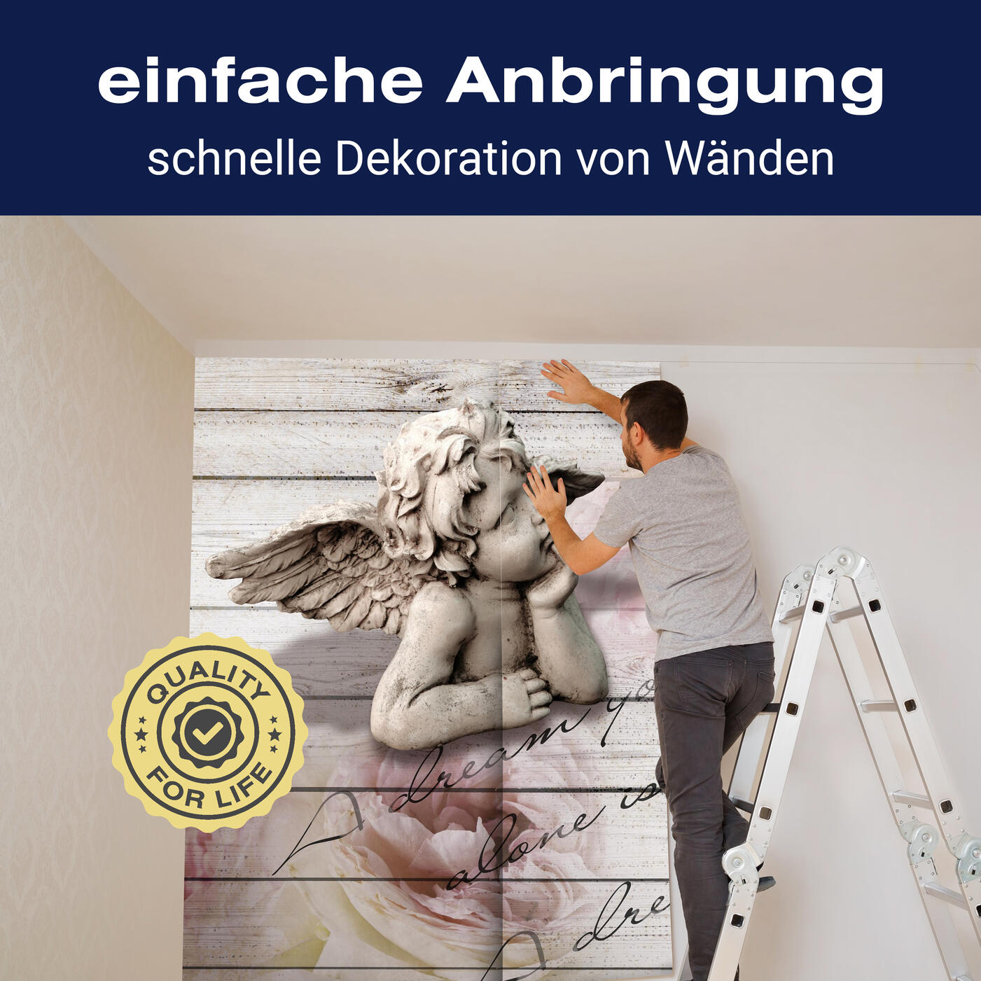 Unsere Fototapeten sind so konzipiert, dass sie ohne großen Aufwand angebracht werden können. Ob selbstklebend oder traditionell, die Anbringung ist einfach und schnell.