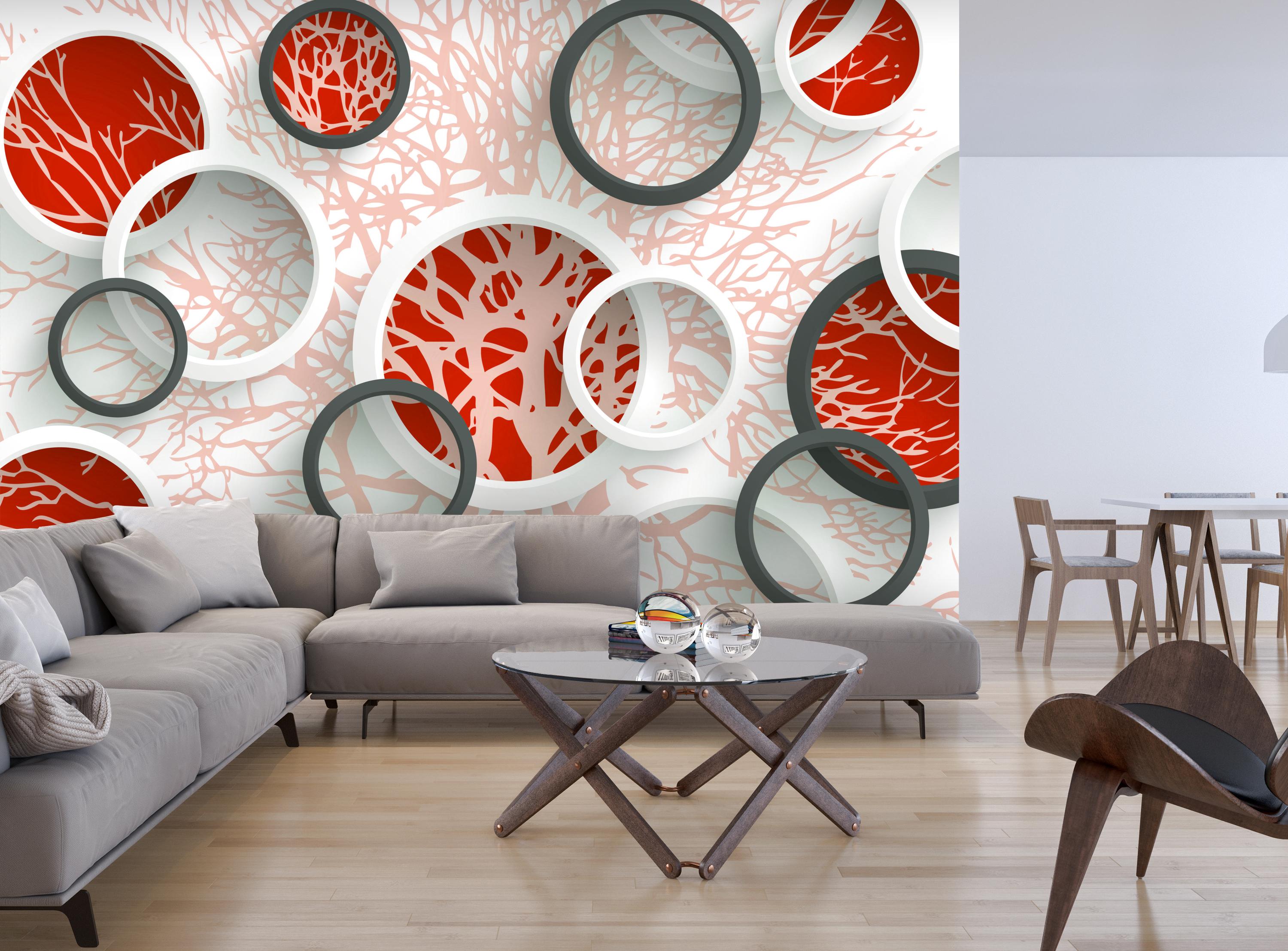 FOTOTAPETE Rot äste 3D Abstrakt Fenster Kreise