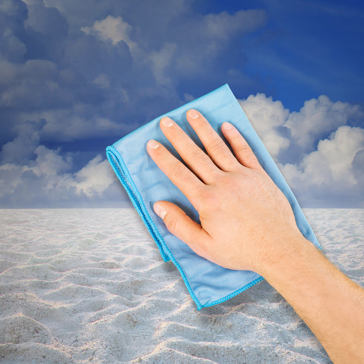 - Reinige eventuelle Verschmutzungen oder Kleberreste sofort mit einem feuchten Schwamm oder Tuch.