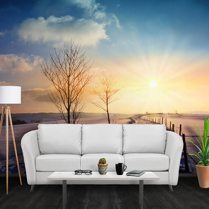 Träumst Du davon, Deine Wände in eine beeindruckende Kunstgalerie zu verwandeln? Mit unserer hochwertigen Fototapete Schnee Zaun Bäume Sonne M6813 ist es jetzt möglich! Jede Wand wird zu einer Leinwand Deiner Kreativität.