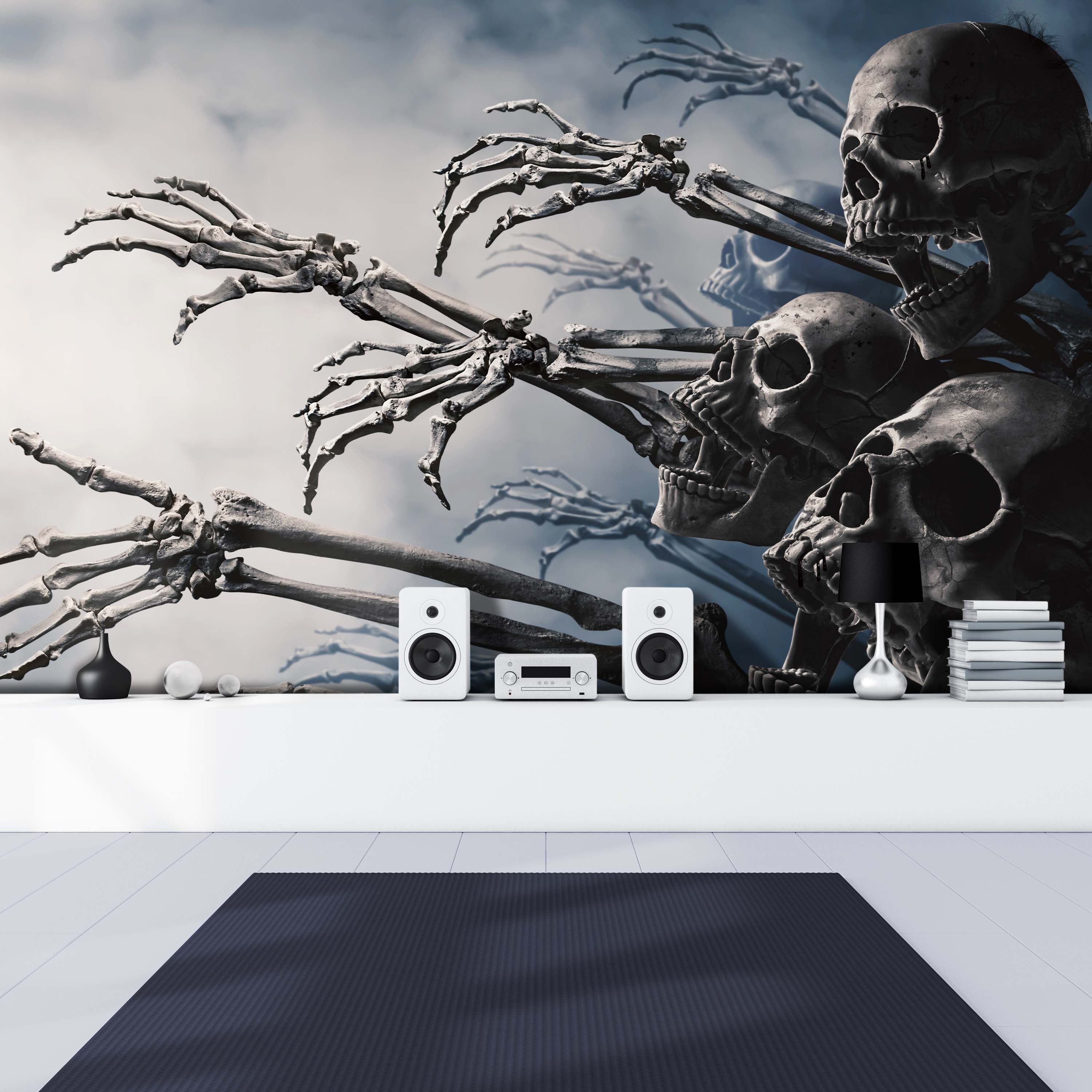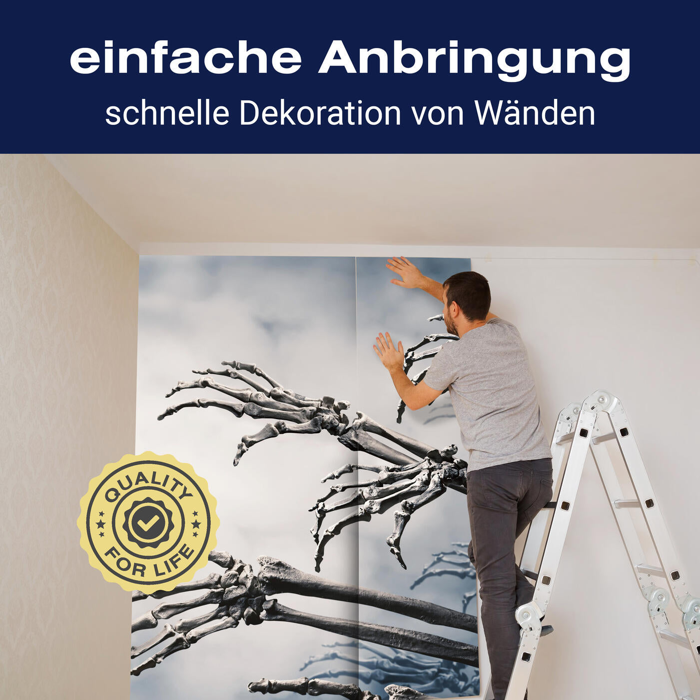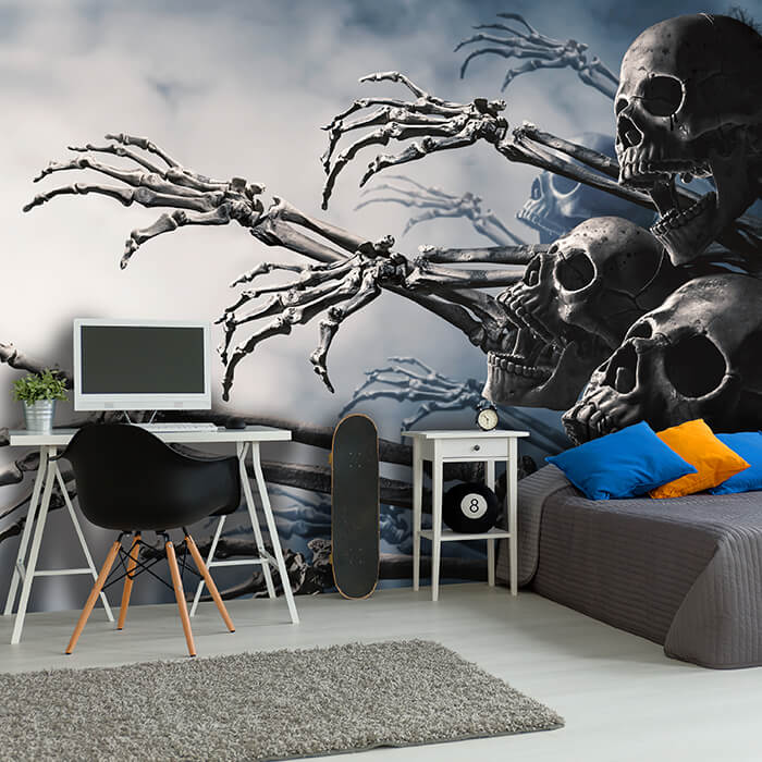 Träumst Du davon, Deine Wände in eine beeindruckende Kunstgalerie zu verwandeln? Mit unserer hochwertigen Fototapete Skelett Totenkopf blau grau M6804 ist es jetzt möglich! Jede Wand wird zu einer Leinwand Deiner Kreativität.