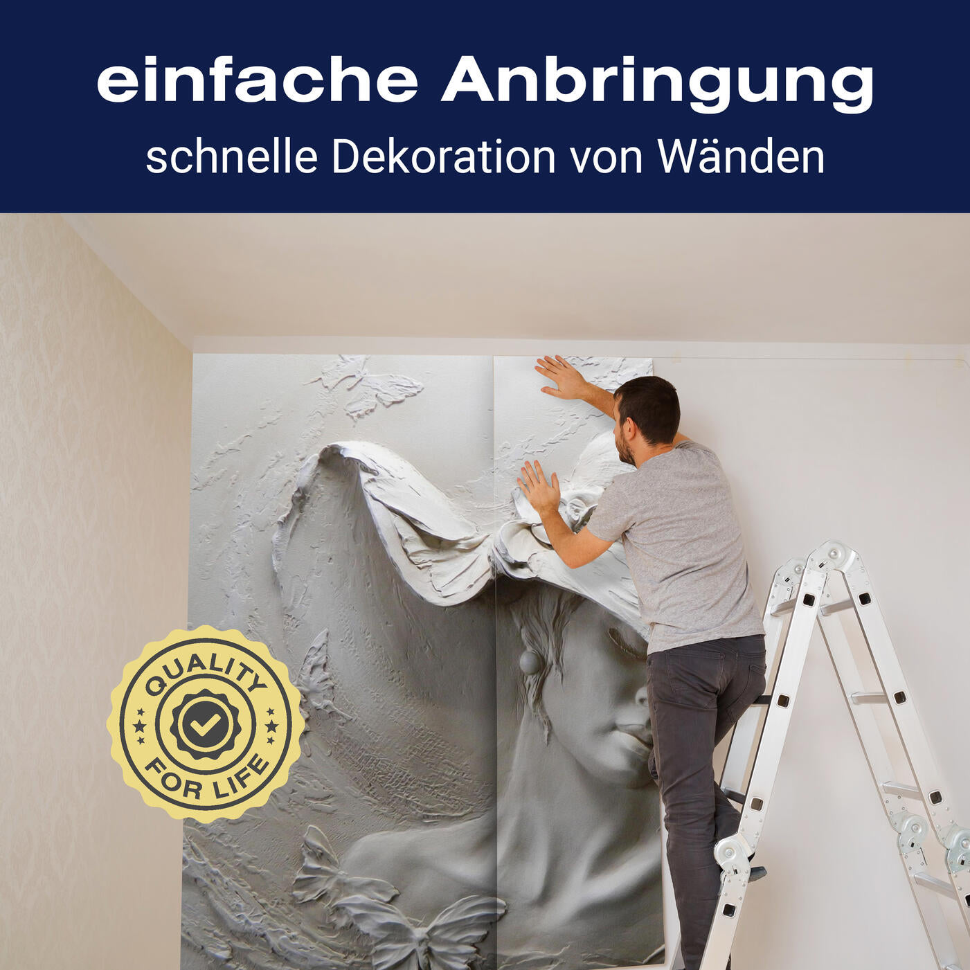 Träumst Du davon, Deine Wände in eine beeindruckende Kunstgalerie zu verwandeln? Mit unserer hochwertigen Fototapete Skulptur Frau Schmetterlinge Gips Wand M4631 ist es jetzt möglich! Jede Wand wird zu einer Leinwand Deiner Kreativität.