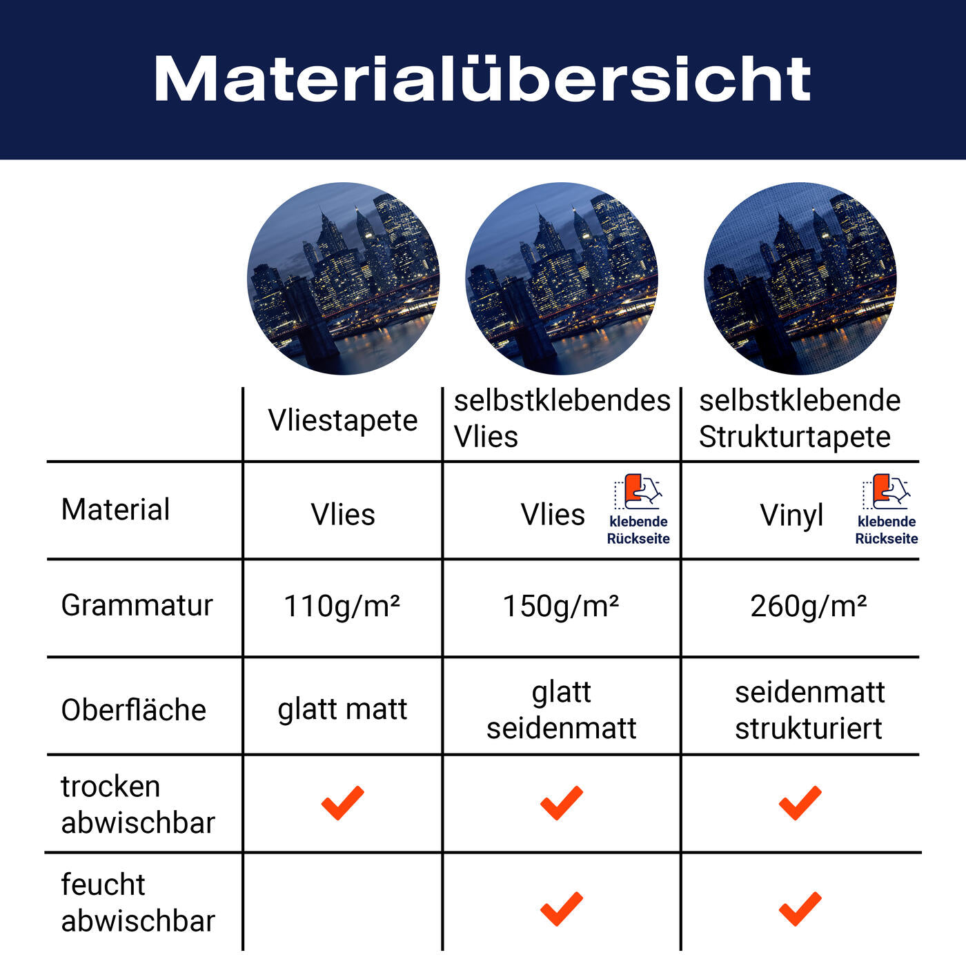 Die Fototapeten sind pflegeleicht und können mit einem feuchten Tuch gereinigt werden, ohne die Farbbrillanz zu beeinträchtigen.