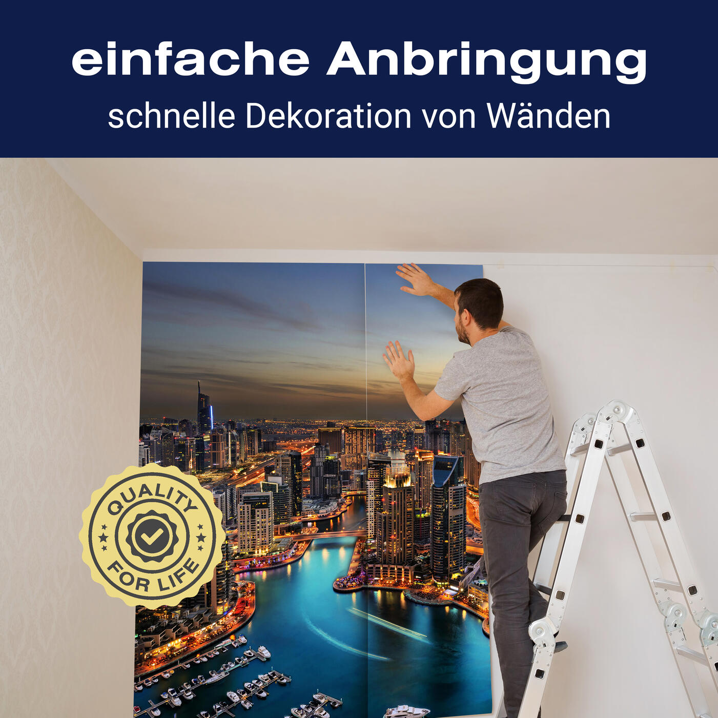 Träumst Du davon, Deine Wände in eine beeindruckende Kunstgalerie zu verwandeln? Mit unserer hochwertigen Fototapete Skyline Dubai Nacht Hafen M6709 ist es jetzt möglich! Jede Wand wird zu einer Leinwand Deiner Kreativität.