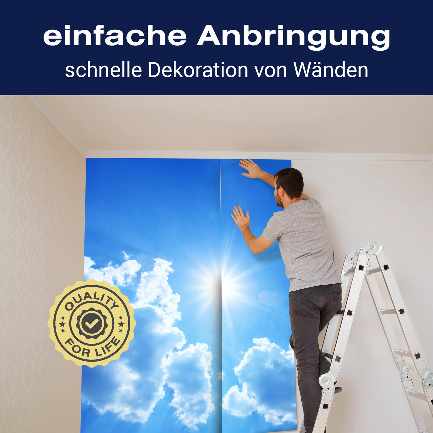 Unsere Fototapeten sind so konzipiert, dass sie ohne großen Aufwand angebracht werden können. Ob selbstklebend oder traditionell, die Anbringung ist einfach und schnell.