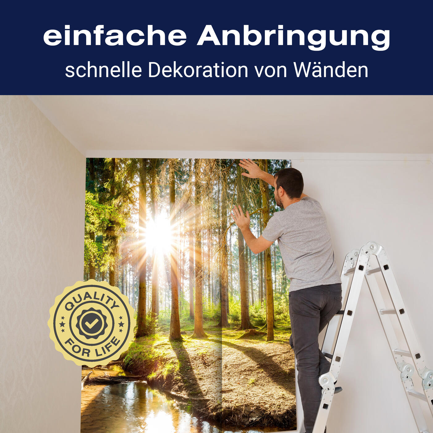 Träumst Du davon, Deine Wände in eine beeindruckende Kunstgalerie zu verwandeln? Mit unserer hochwertigen Fototapete Sonnenschein im Wald mit Bach M5752 ist es jetzt möglich! Jede Wand wird zu einer Leinwand Deiner Kreativität.