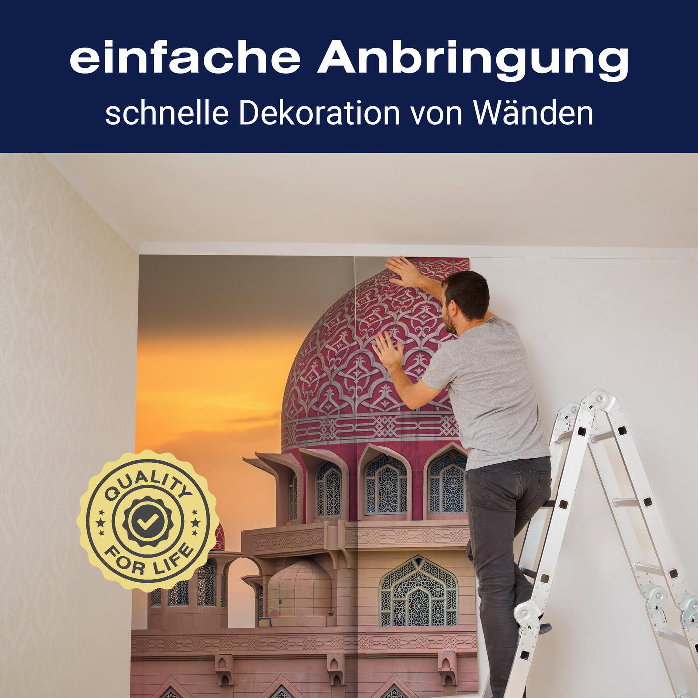 Träumst Du davon, Deine Wände in eine beeindruckende Kunstgalerie zu verwandeln? Mit unserer hochwertigen Fototapete Sonnenuntergang über Putrajaya-Moschee M0815 ist es jetzt möglich! Jede Wand wird zu einer Leinwand Deiner Kreativität.
