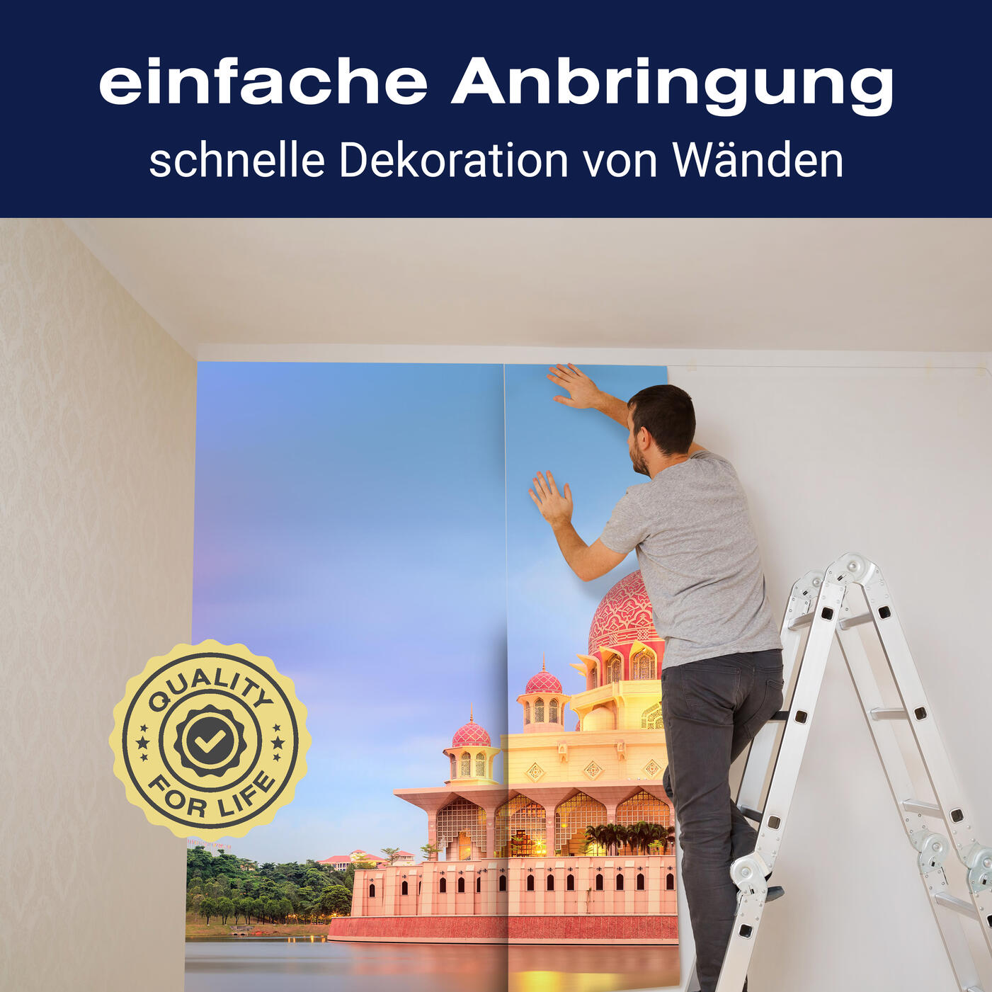 Träumst Du davon, Deine Wände in eine beeindruckende Kunstgalerie zu verwandeln? Mit unserer hochwertigen Fototapete Sonnenuntergang Putrajaya-Moschee M0819 ist es jetzt möglich! Jede Wand wird zu einer Leinwand Deiner Kreativität.