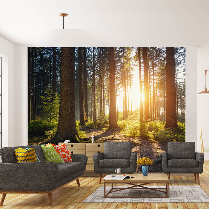 Träumst Du davon, Deine Wände in eine beeindruckende Kunstgalerie zu verwandeln? Mit unserer hochwertigen Fototapete Sonnenuntergang Wald Bäume M5675 ist es jetzt möglich! Jede Wand wird zu einer Leinwand Deiner Kreativität.