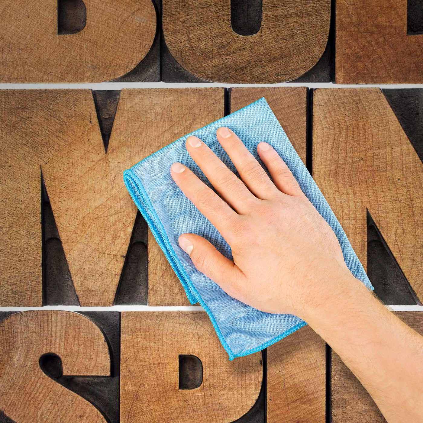 - Reinige eventuelle Verschmutzungen oder Kleberreste sofort mit einem feuchten Schwamm oder Tuch.