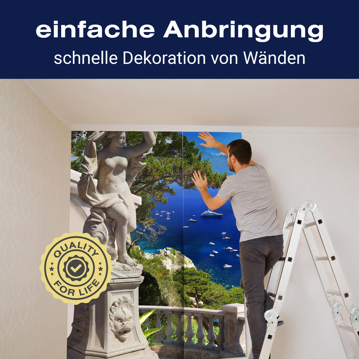 Träumst Du davon, Deine Wände in eine beeindruckende Kunstgalerie zu verwandeln? Mit unserer hochwertigen Fototapete Statue Meer Boote mediterran M6836 ist es jetzt möglich! Jede Wand wird zu einer Leinwand Deiner Kreativität.