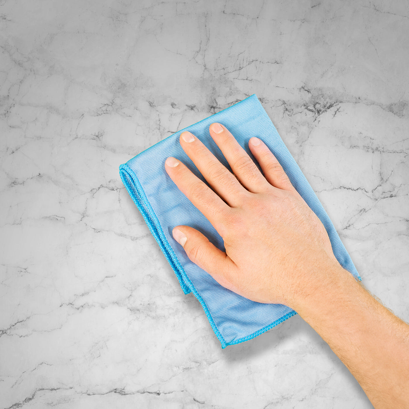 - Reinige eventuelle Verschmutzungen oder Kleberreste sofort mit einem feuchten Schwamm oder Tuch.